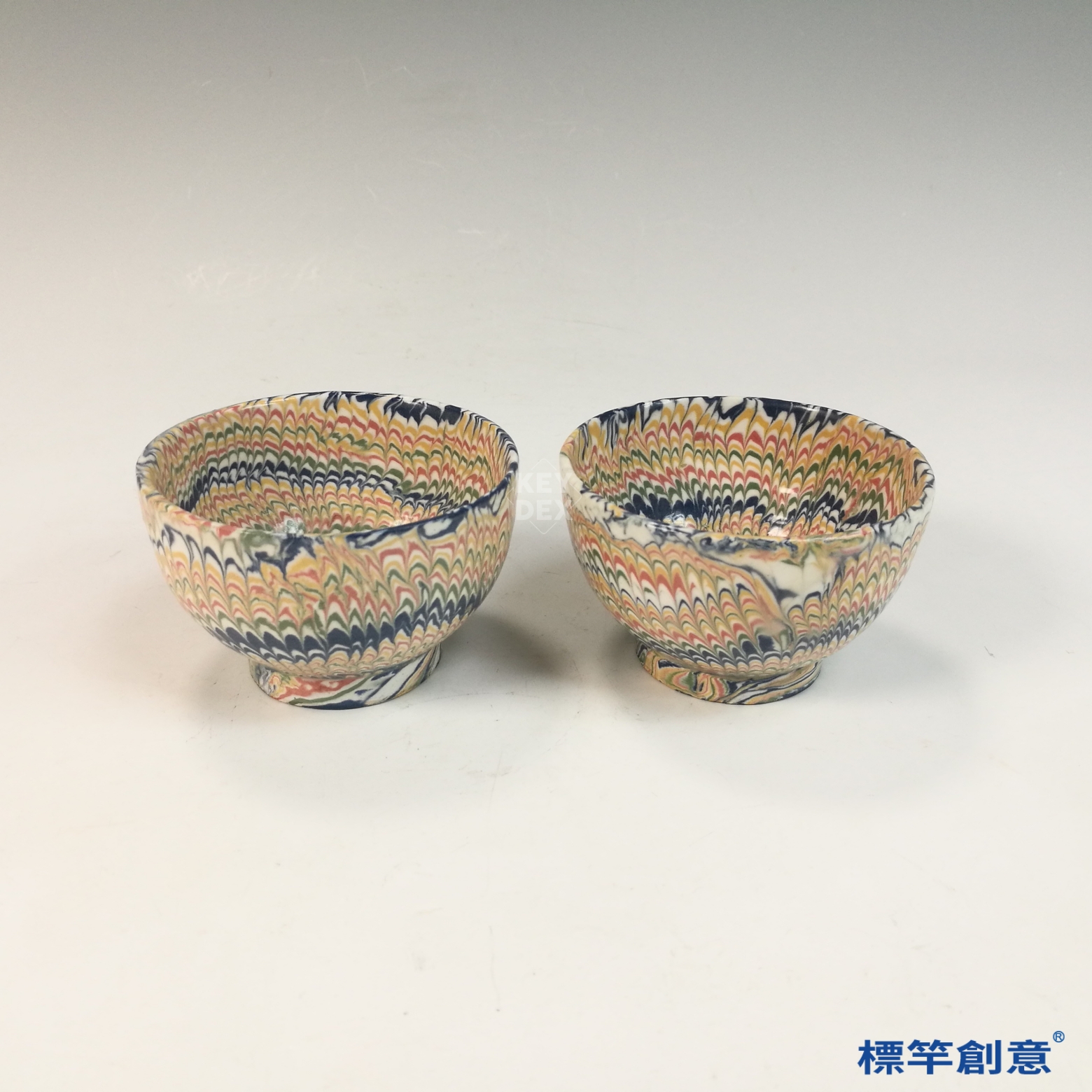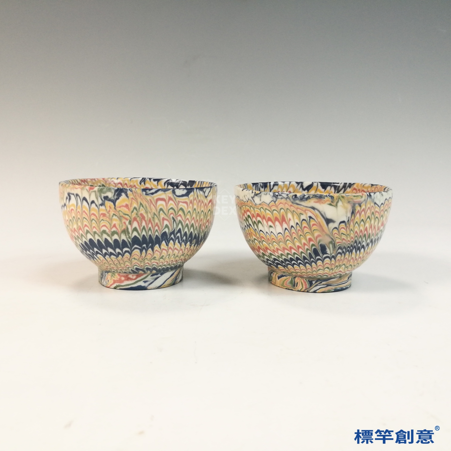 GA084 宋代當陽峪窯絞胎釉彩飾杯一對