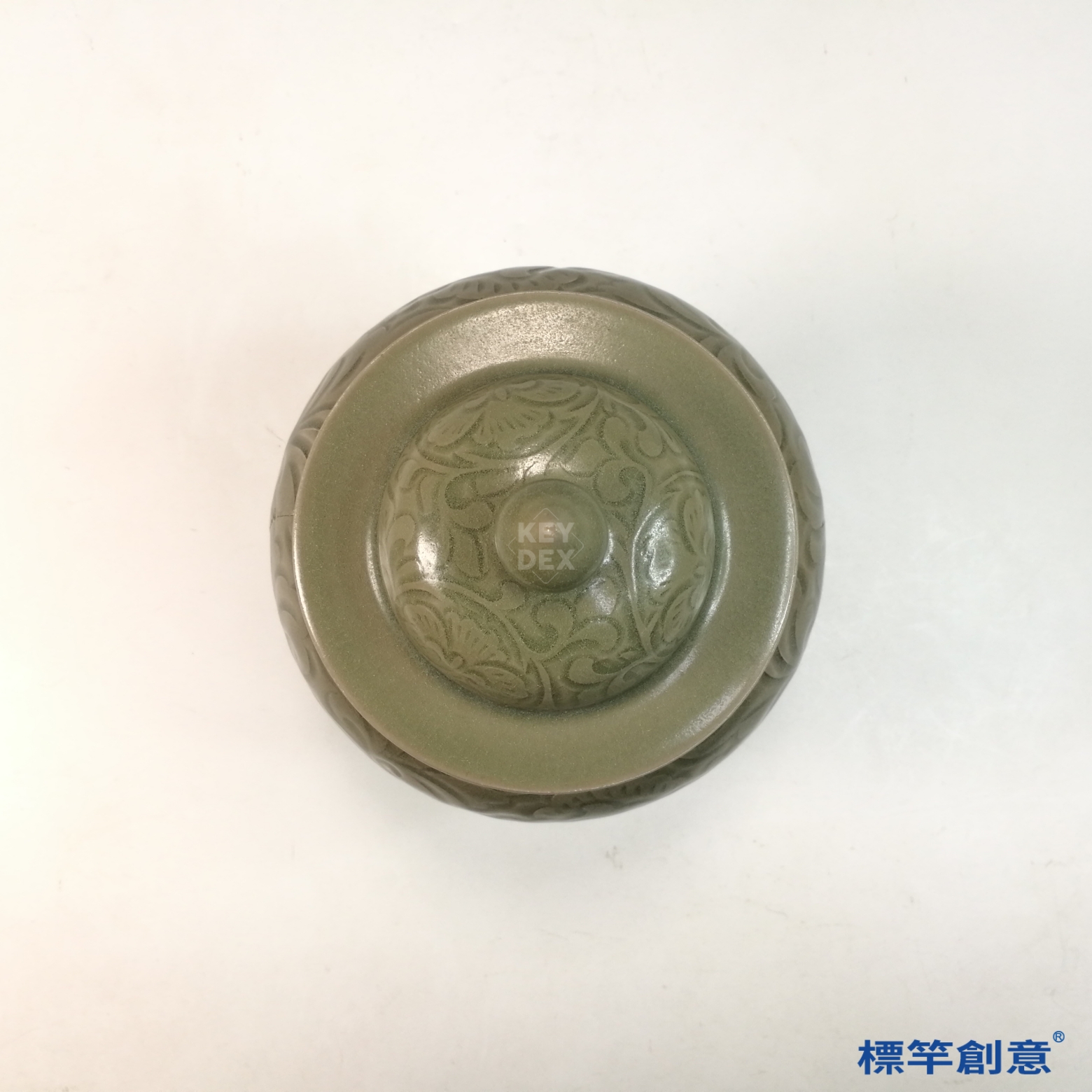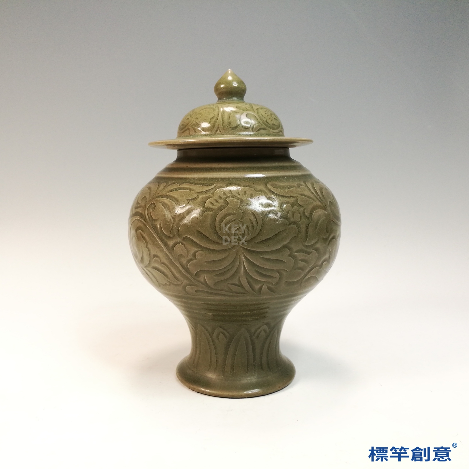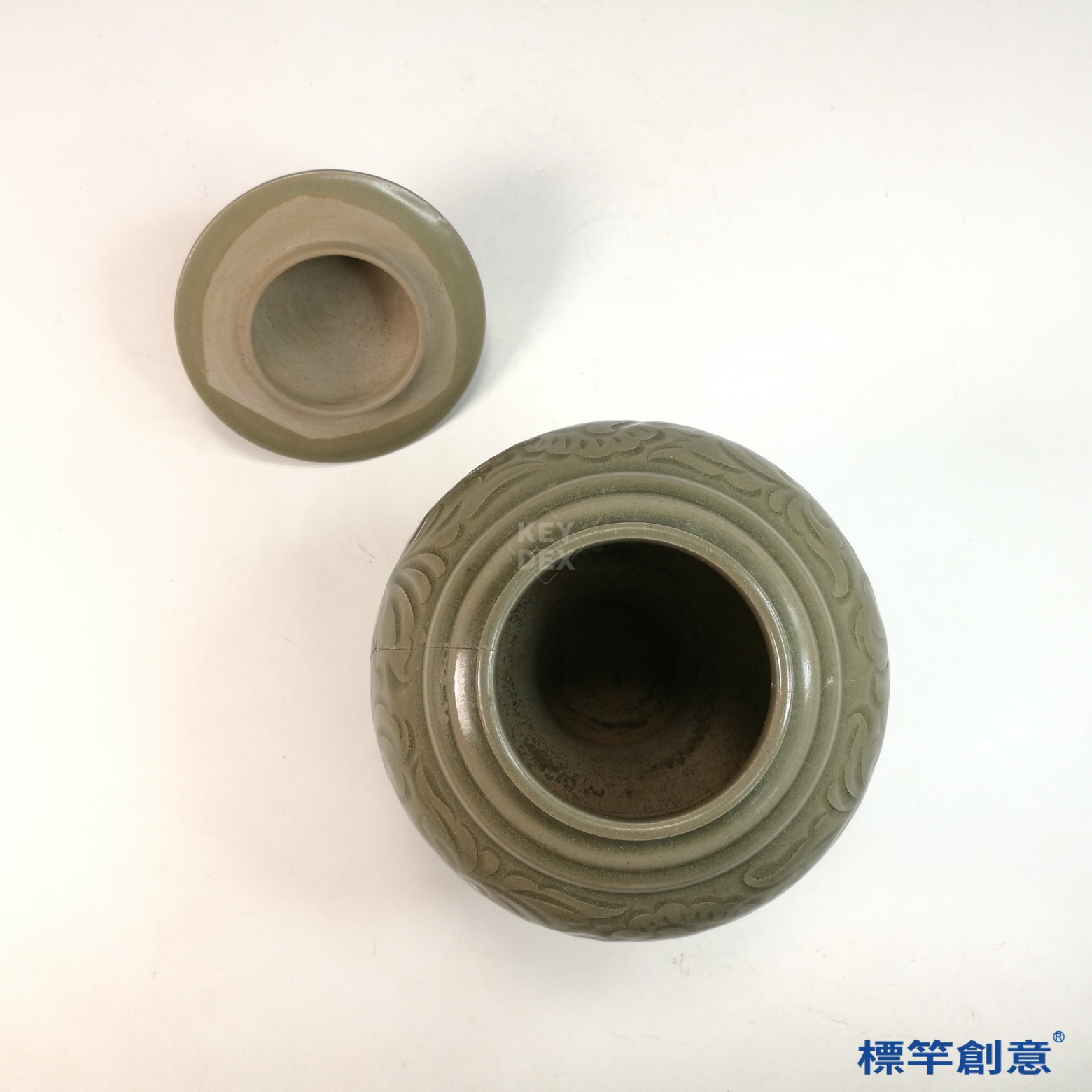 GA085 宋代龍泉窯青瓷刻纏枝蓮紋帶蓋罐
