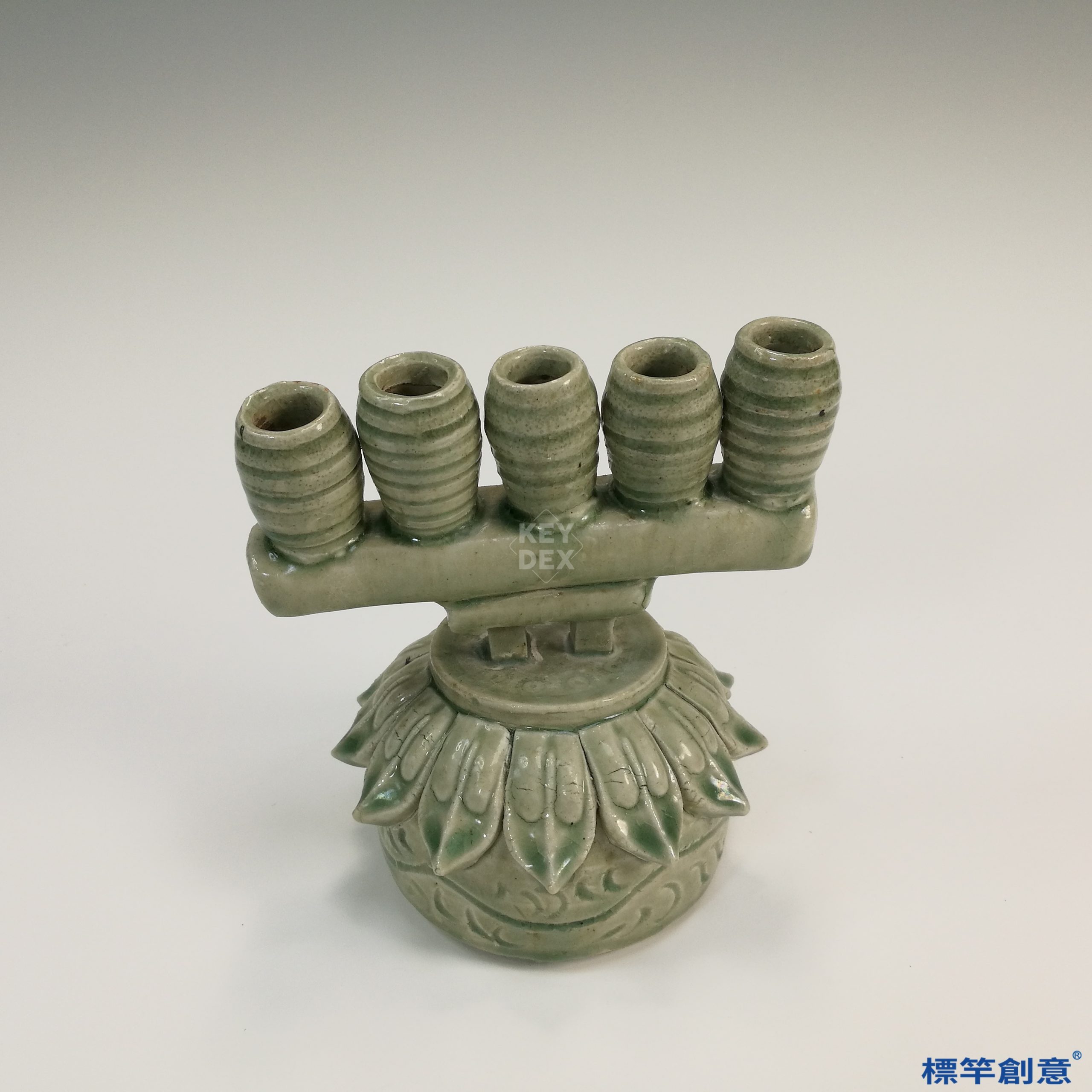 GB019 北宋越窯系青瓷蓮瓣紋佛教五方佛五管燭台
