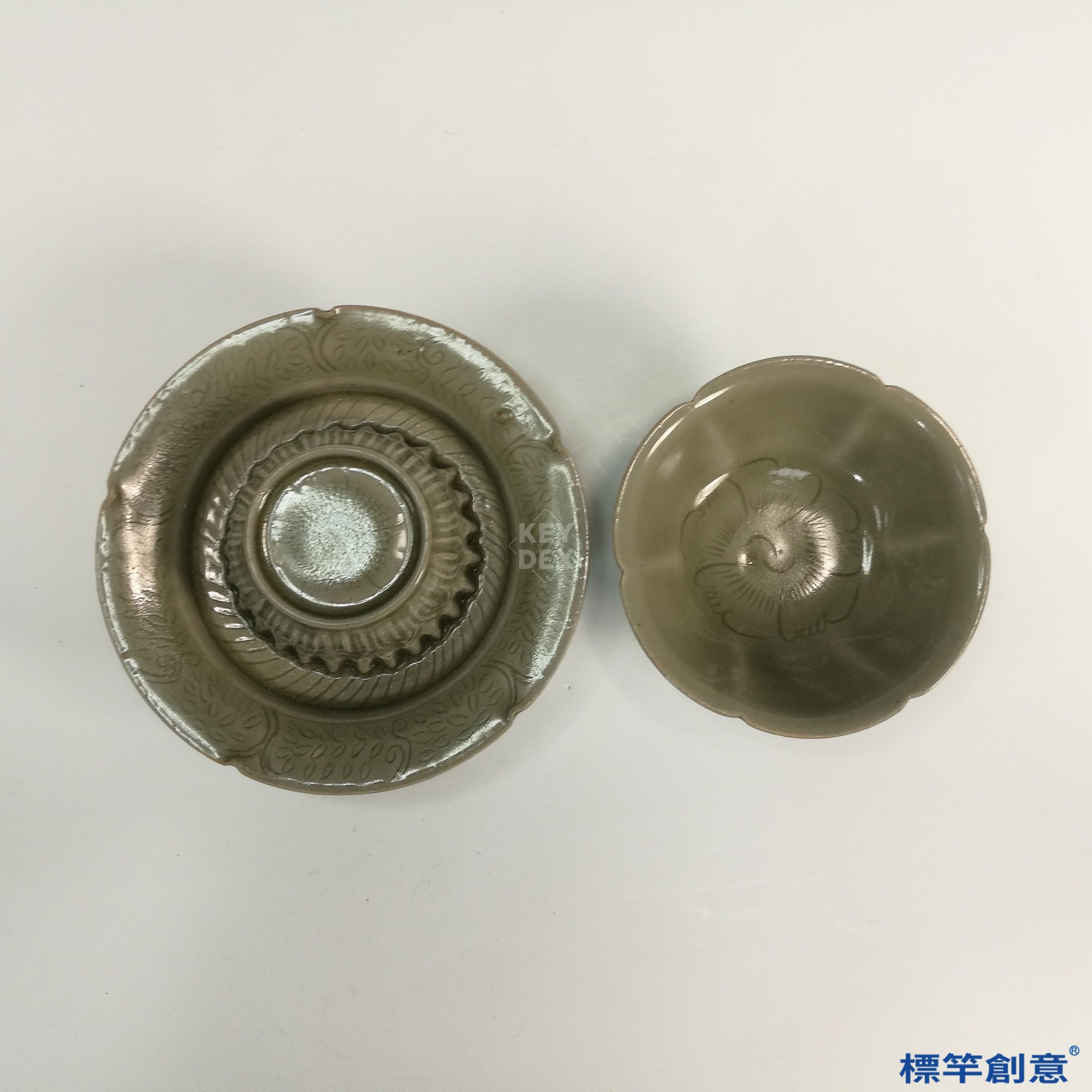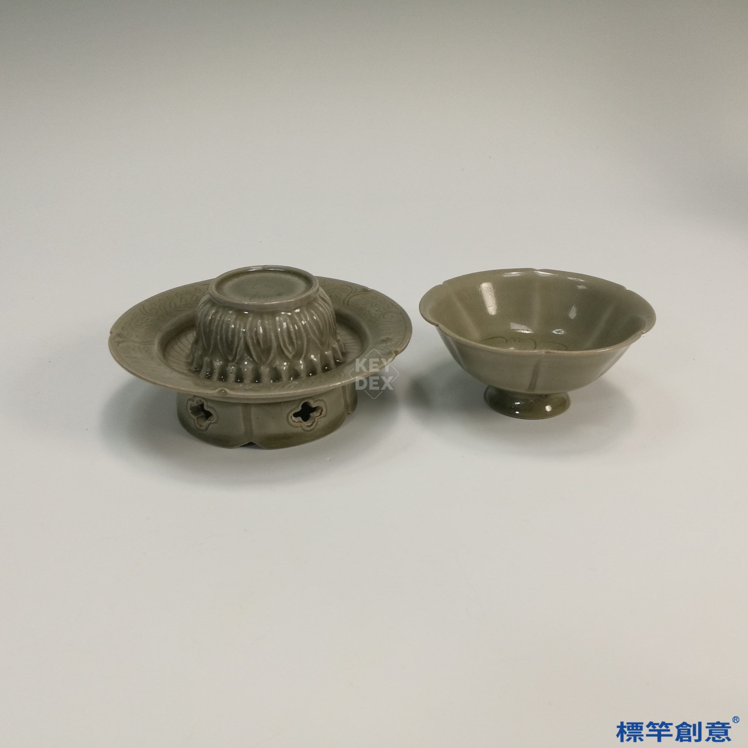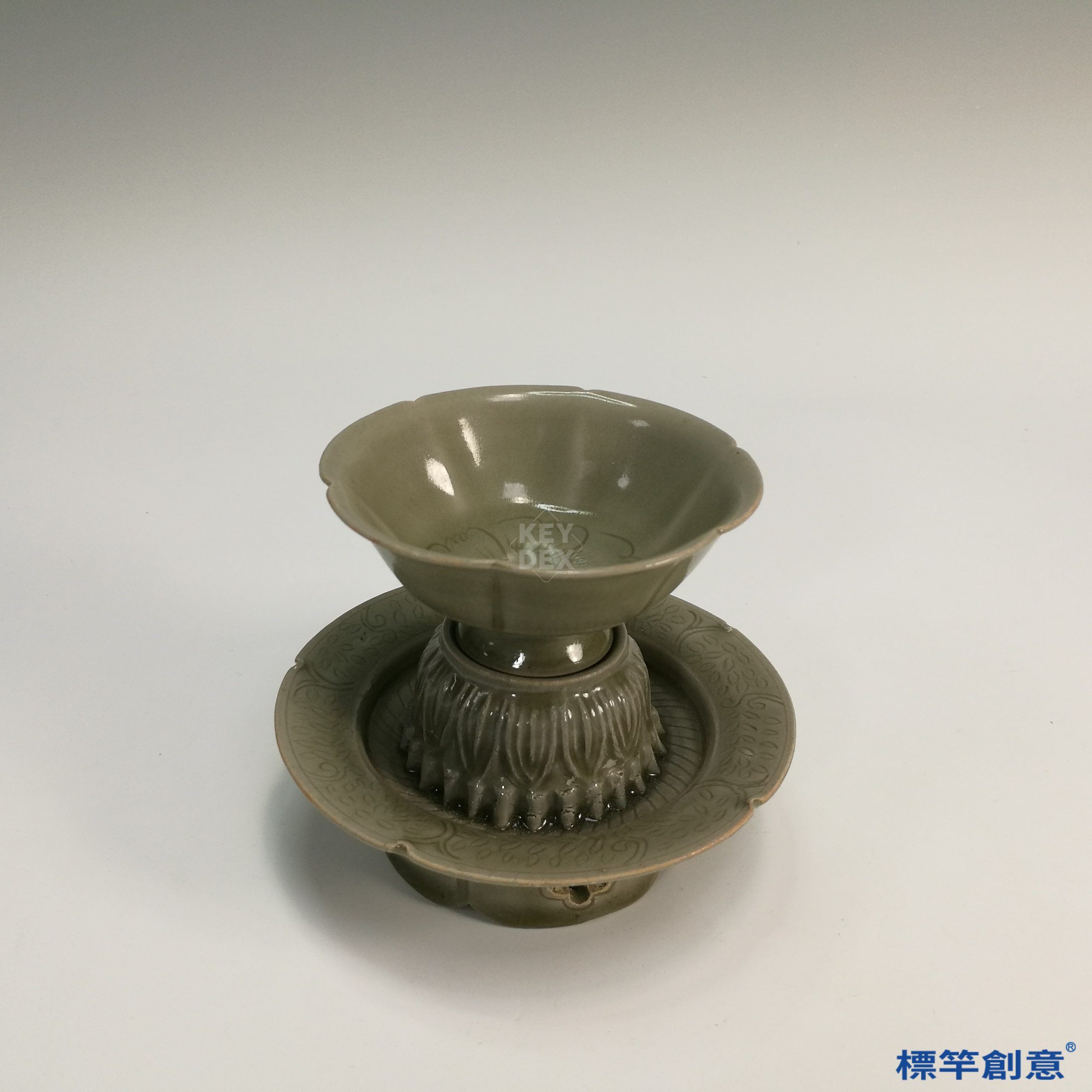GB035 北宋龍泉金村窯青瓷六瓣花口盞杯盞托一組