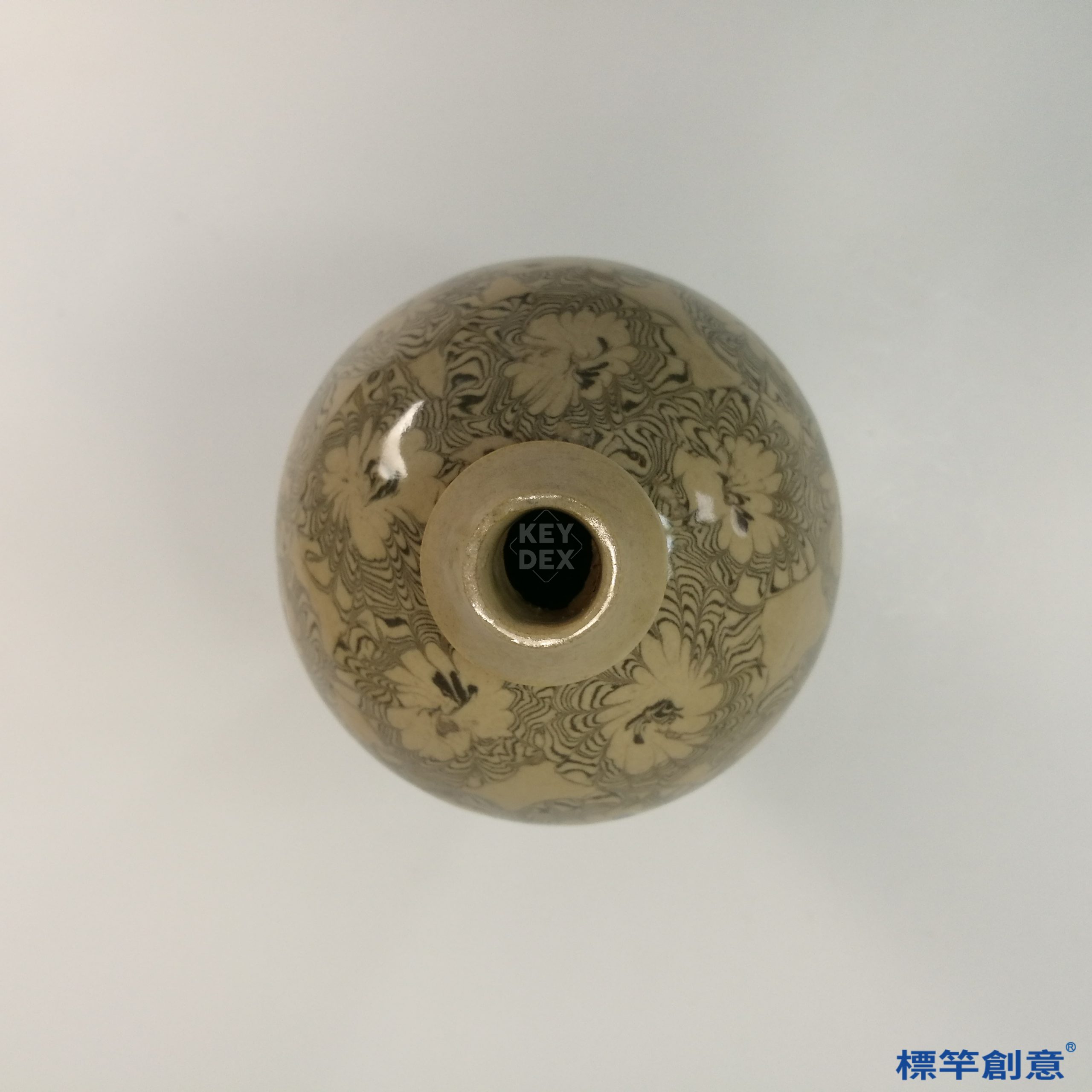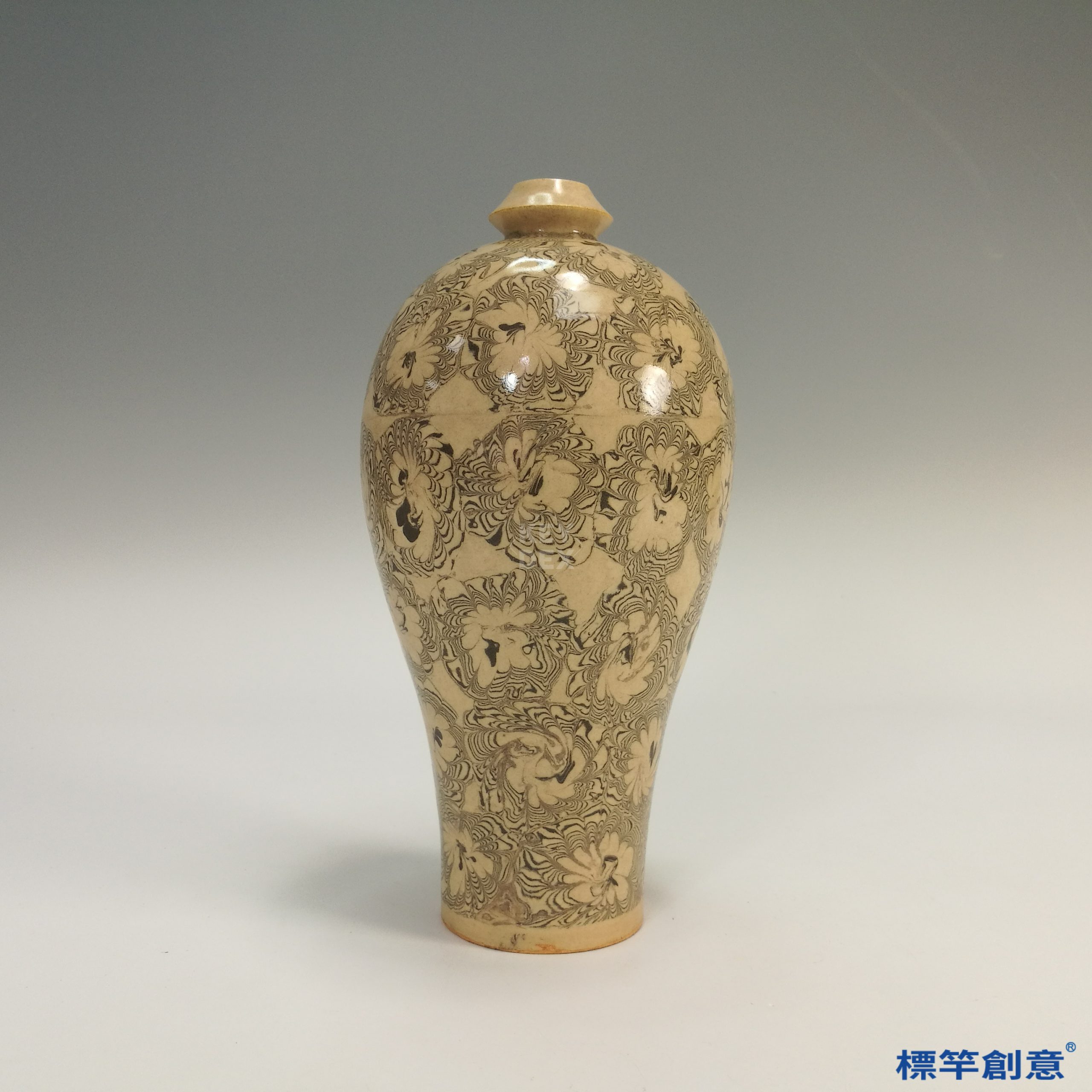 GB043 北宋當陽峪窯米黃釉絞胎花卉紋梅瓶