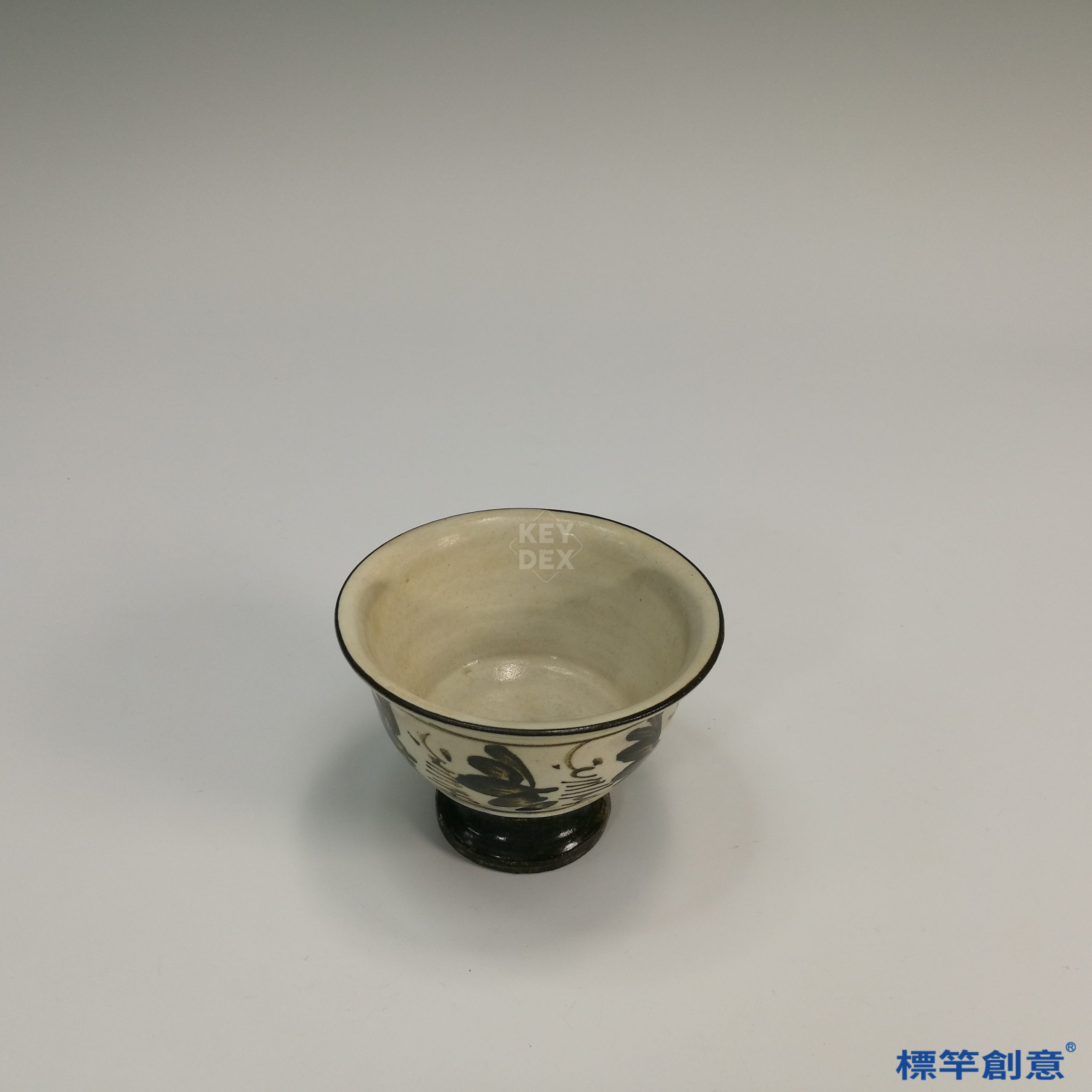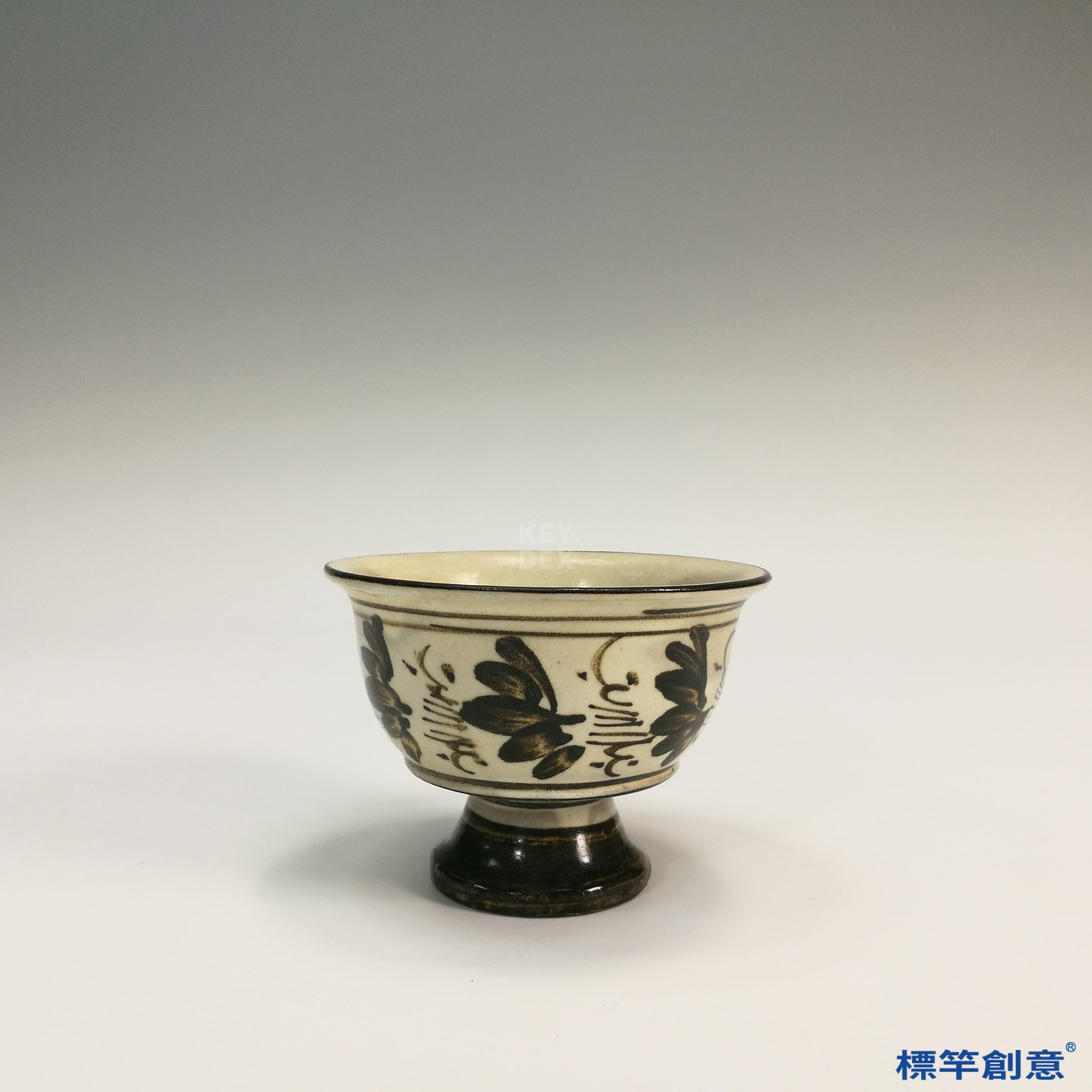 GB052 北宋磁州窯米白釉黑彩花卉紋高足杯