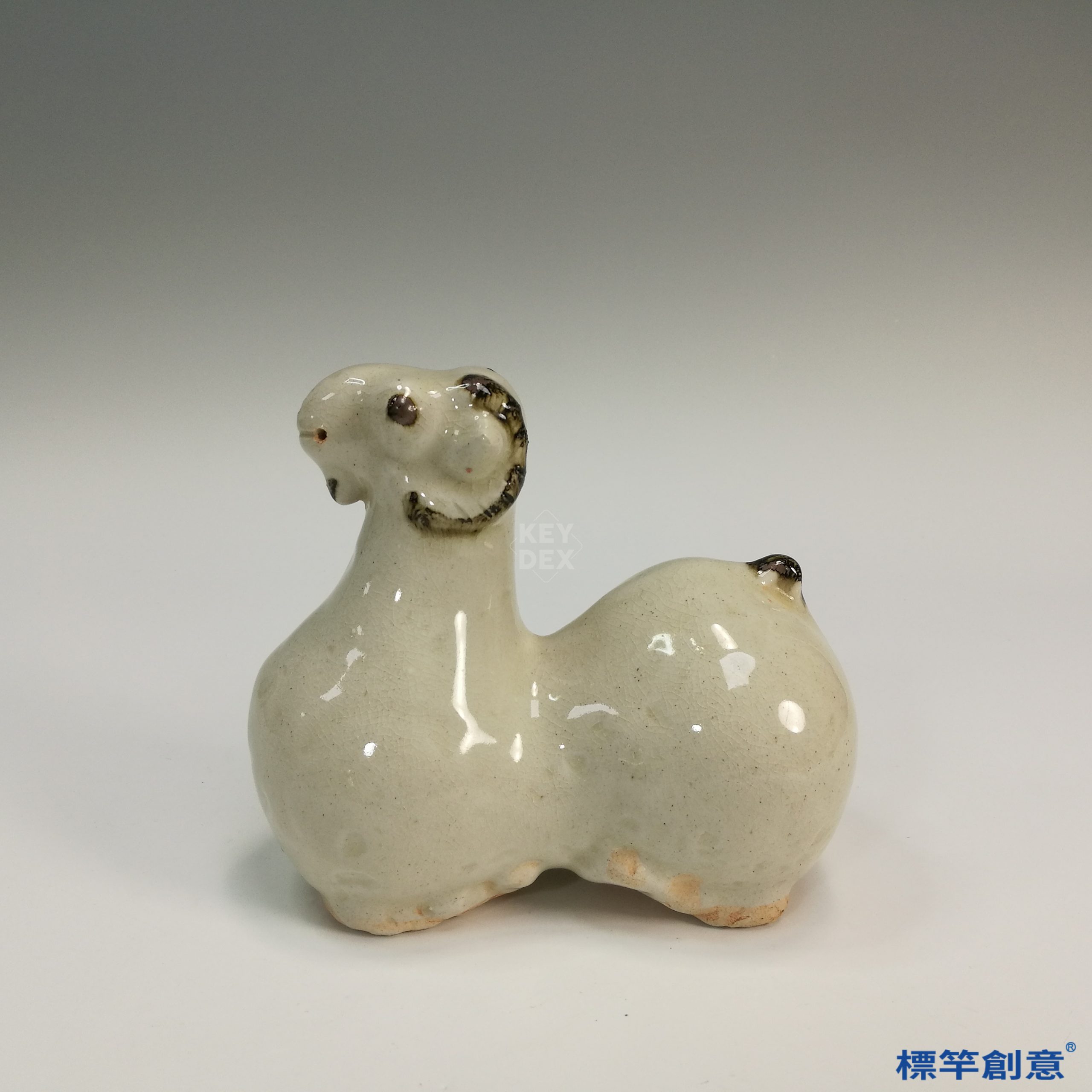GB053 北宋湘湖窯白釉點褐彩羊形俑