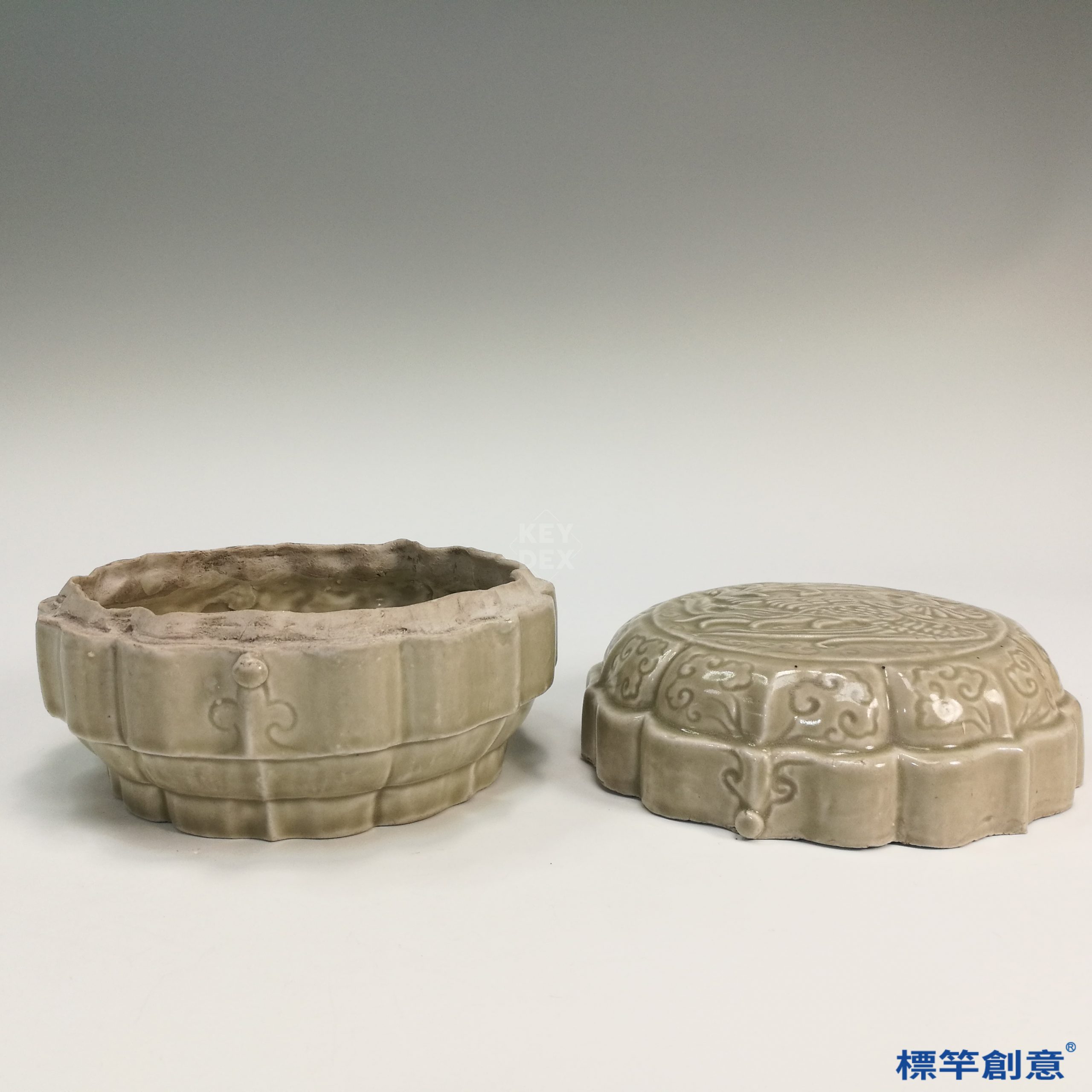 GB055 北宋定窯系米白釉印鳳紋葵口首飾盒