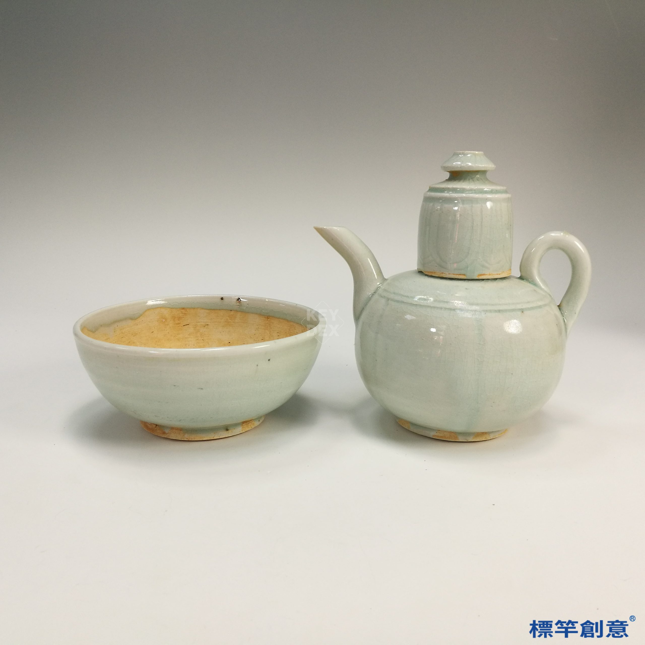 GB059 北宋建寧窯青白瓷酒壺壺托一套