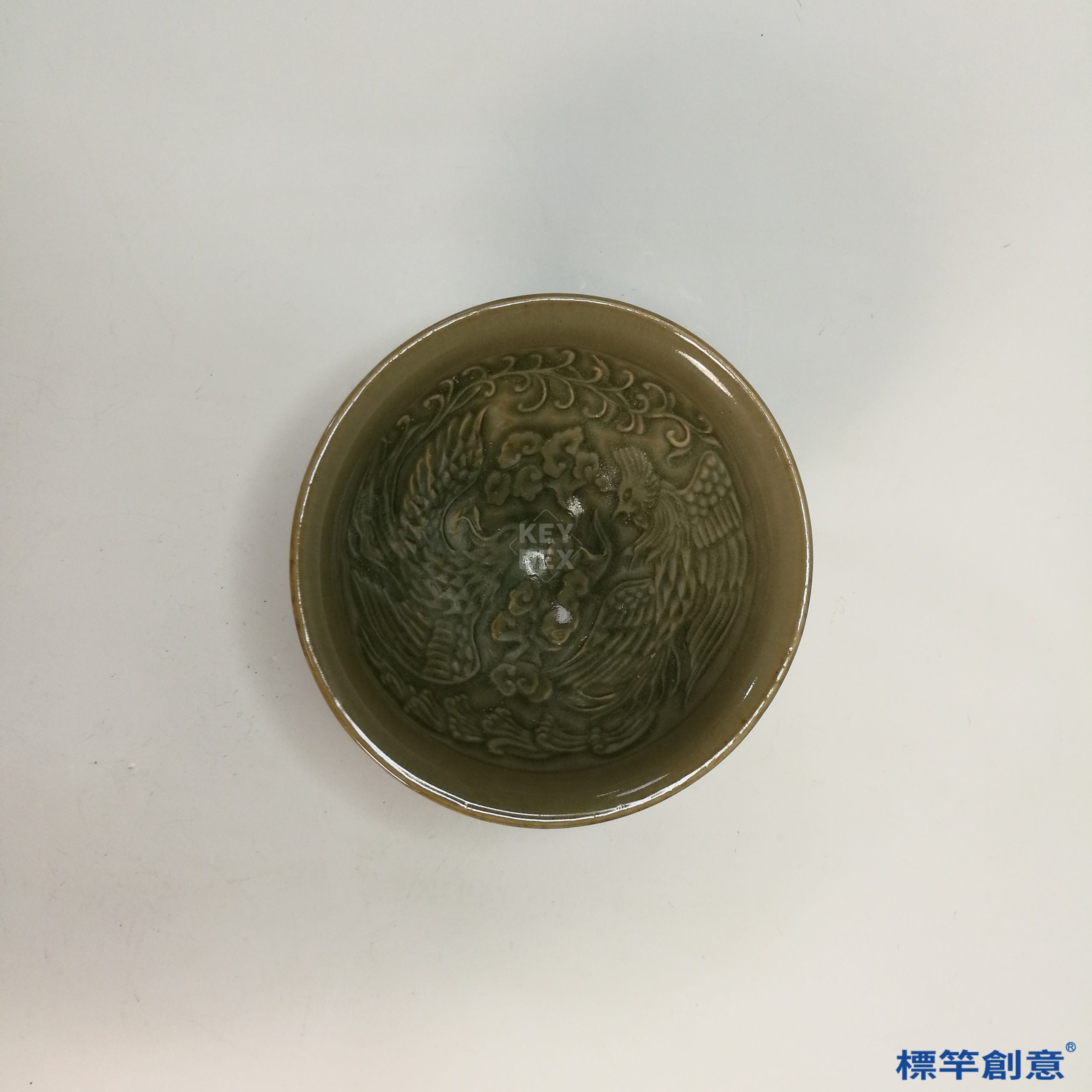 GB068 北宋耀州窯褐青瓷印雙鳳紋茶盞