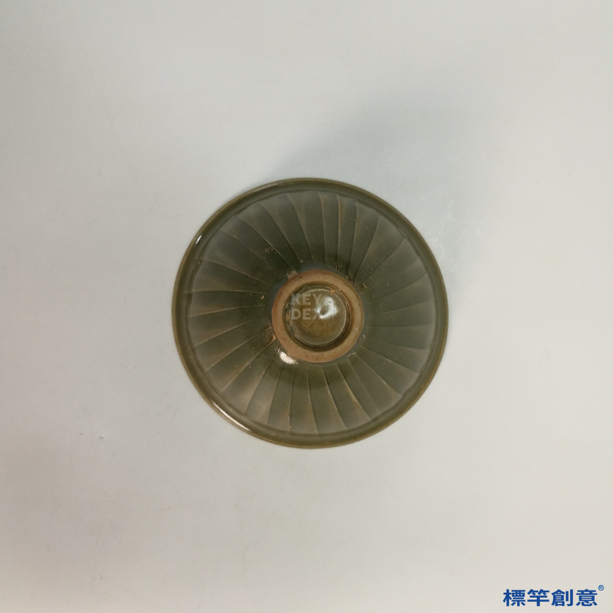 本盞高5公分,口徑約10.5公分,器形呈典型笠式敞口,斜壁深腹,下承小圈足。造型輕盈挺拔,口沿略外撇,比例協調穩重。