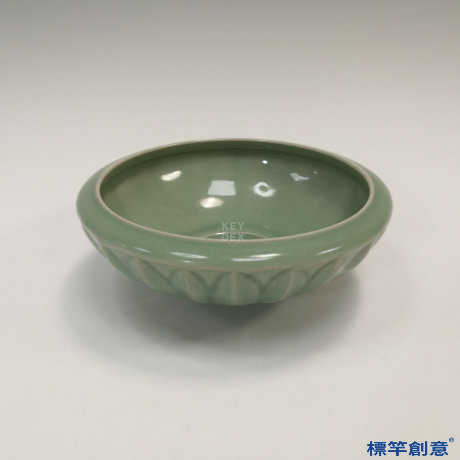 GB092 北宋龍泉窯青瓷刻蓮瓣紋歛口鉢形碗