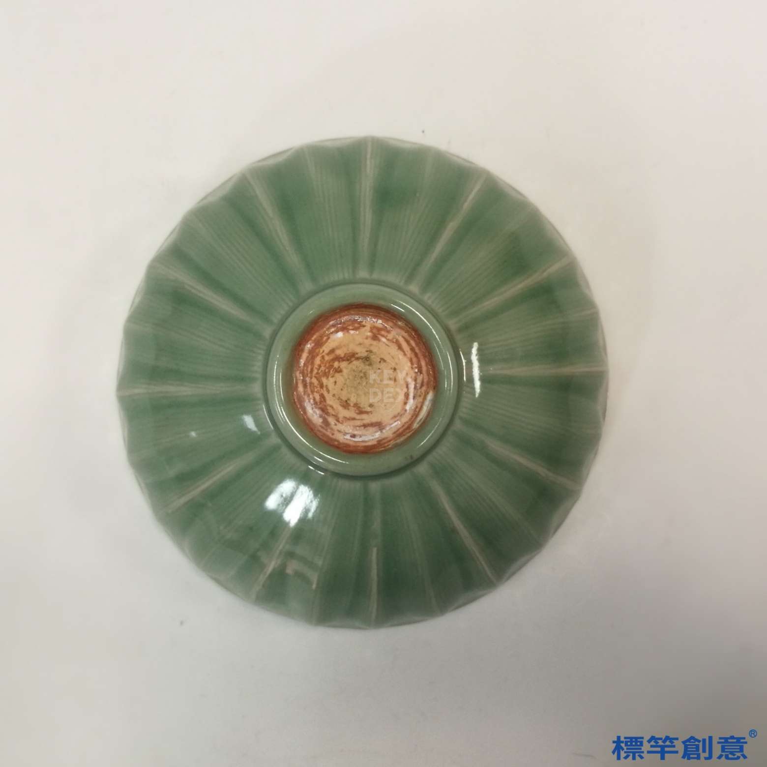 通體施青釉,釉色翠潤柔和,略帶淡綠色調,光澤瑩潤。內外壁皆刻蓮瓣紋飾,刀法流暢,分布對稱。胎體堅實,足底露胎見米黃色,屬典型龍泉窯風格。