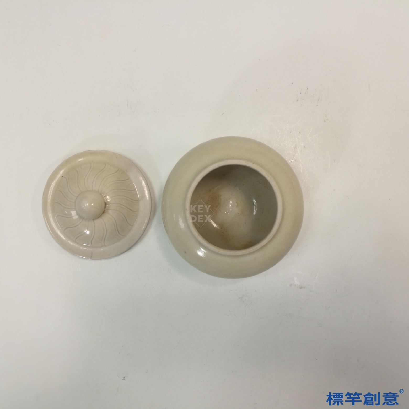 採覆燒法,口沿露胎,燒成均勻,蓋身一體燒製,工藝精準,體現北宋定窯技術水準。