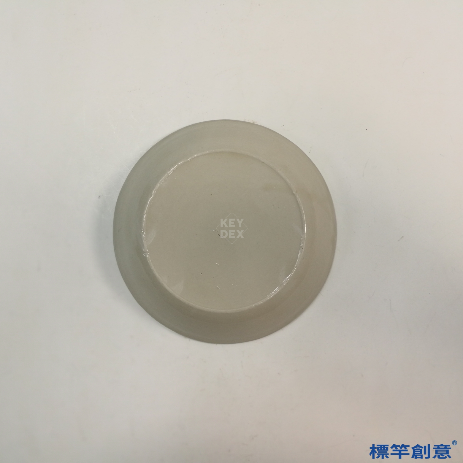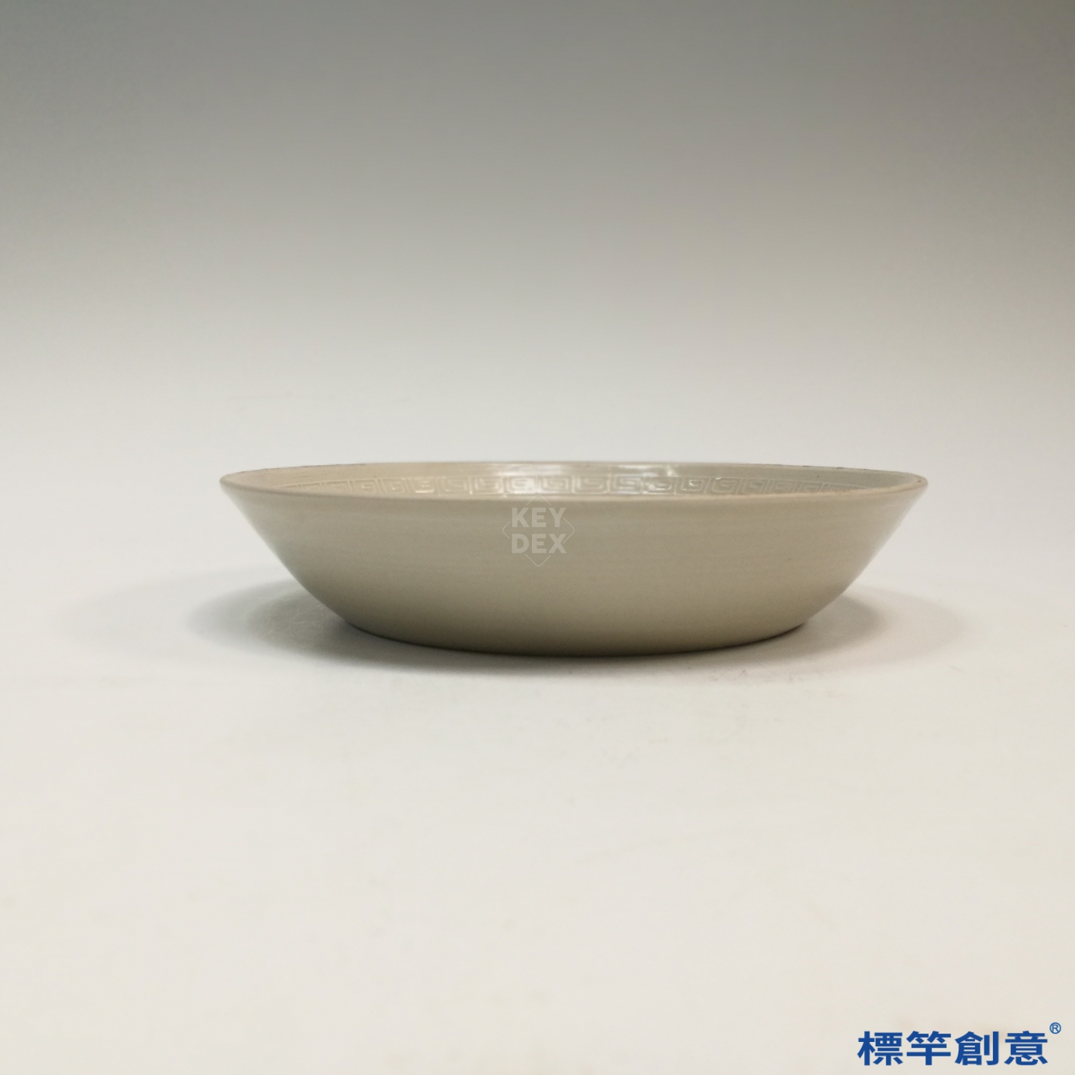 本盤高3.2公分,口徑15.5公分,敞口弧壁,平底微圈足,比例勻稱,造型端正雅致,屬典型中小型日用盤式樣。