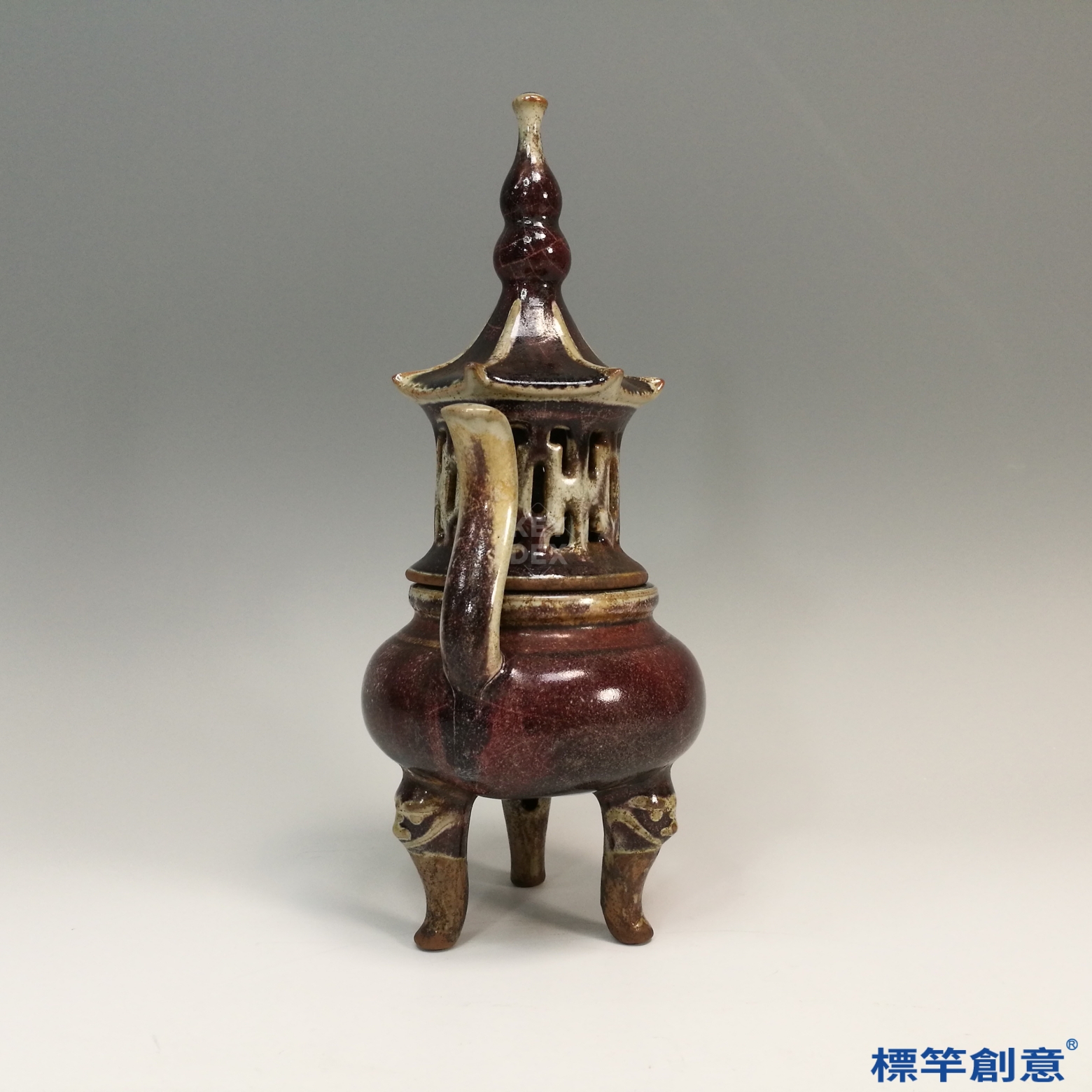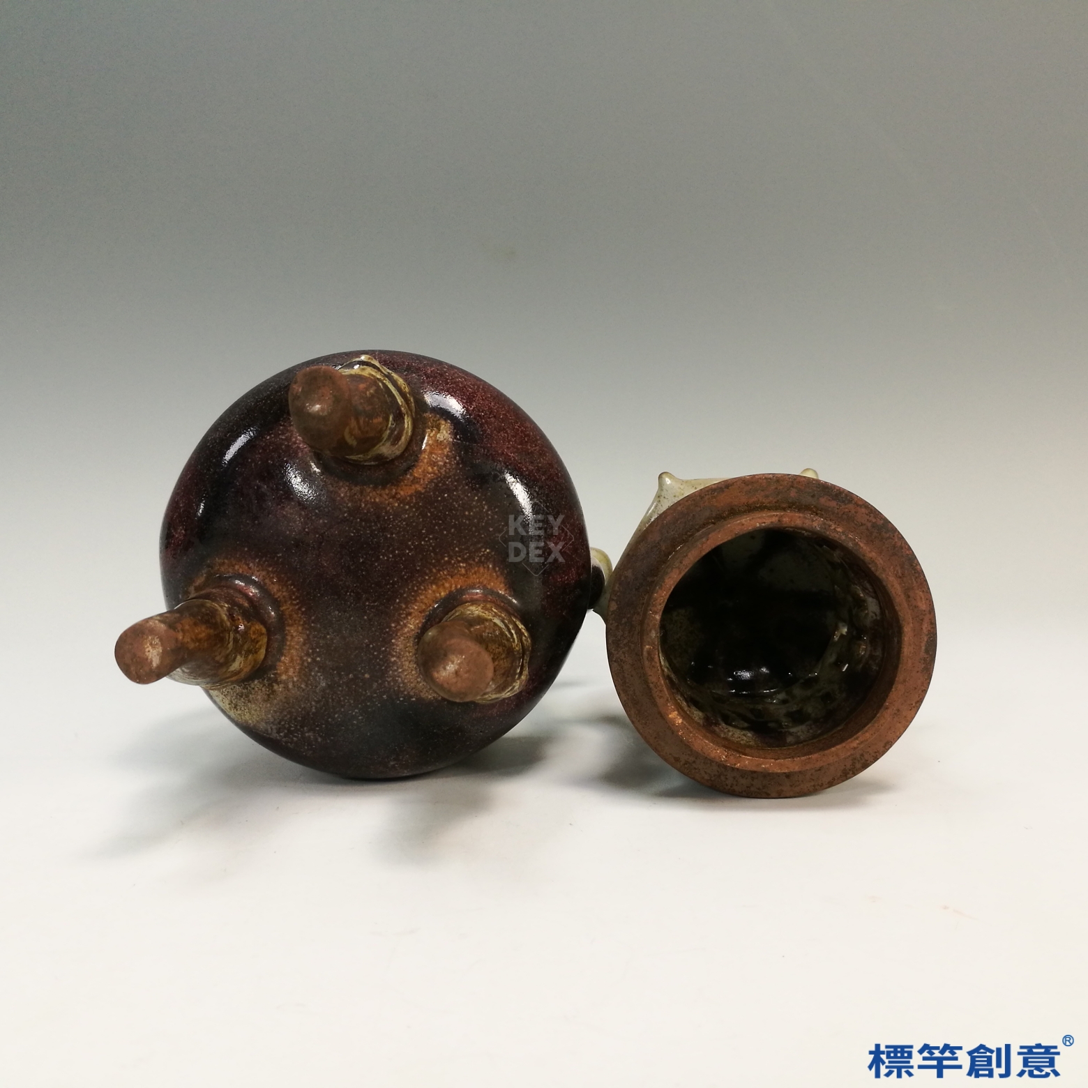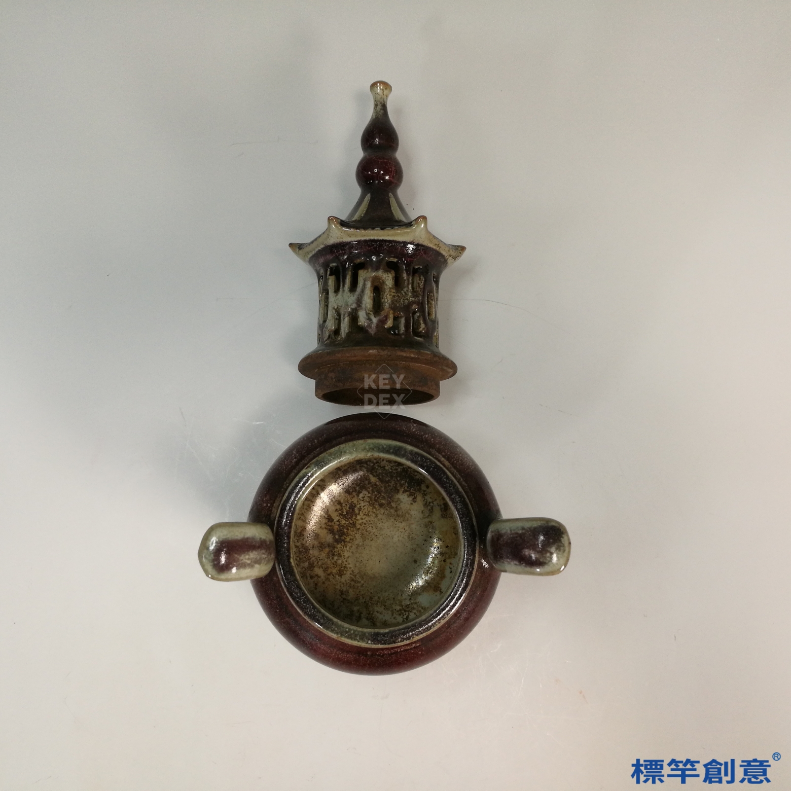 GB118 北宋鈞窯醬釉貼塑葫蘆塔式道教香爐