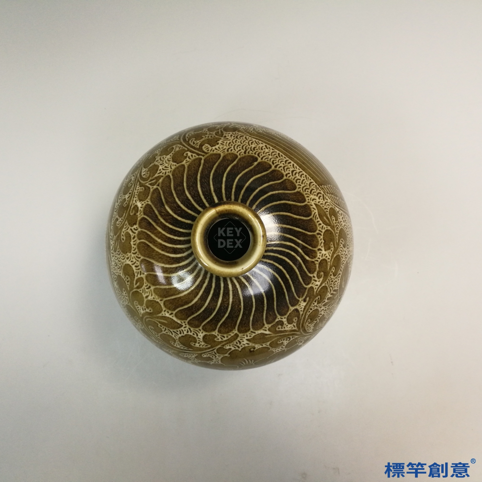 胎體細膩緊密,先刻紋再上釉,以高溫還原氣氛燒成。褐黃釉為鐵質含量較高之釉色,其色調變化需精確控溫與釉層厚薄調配,燒製難度較高。