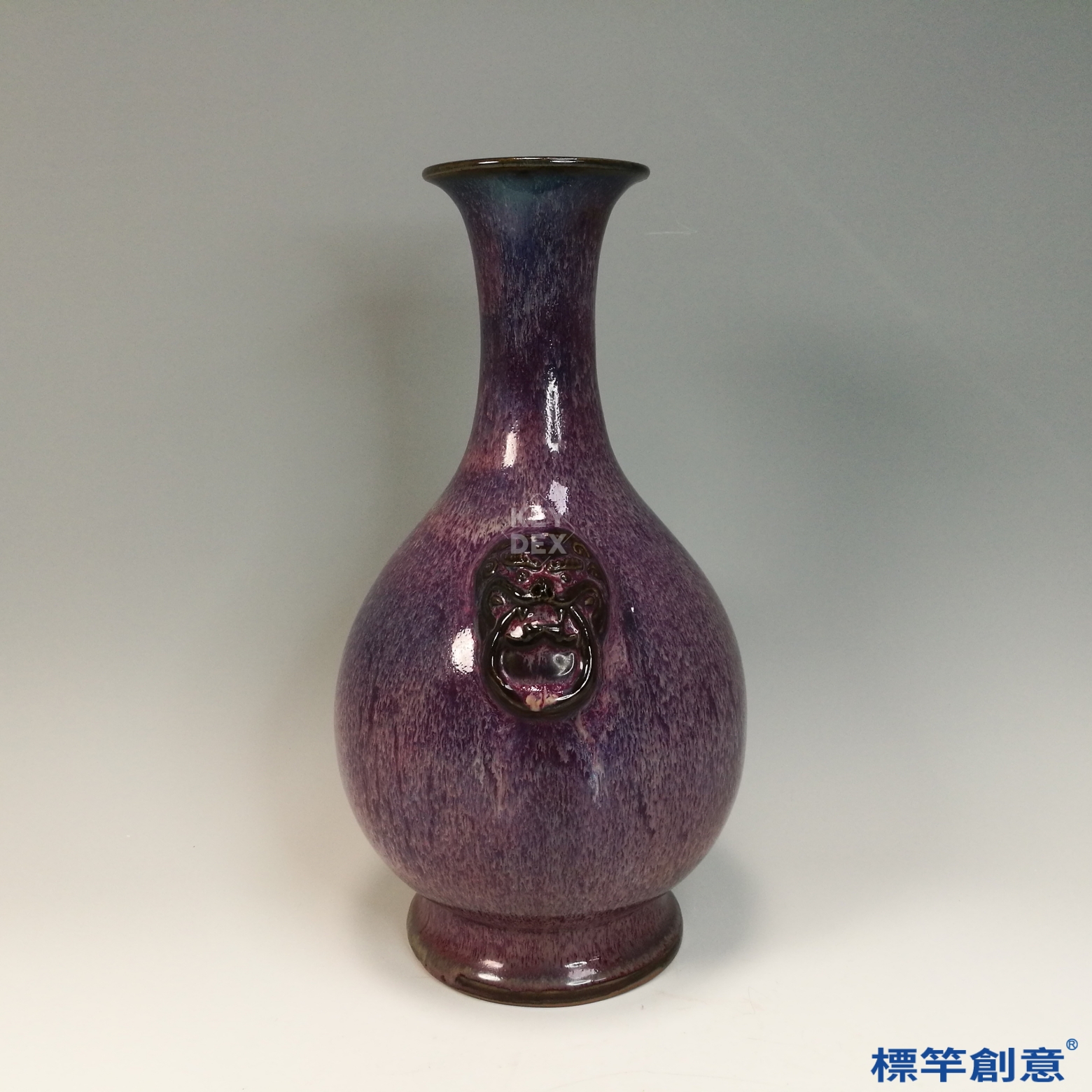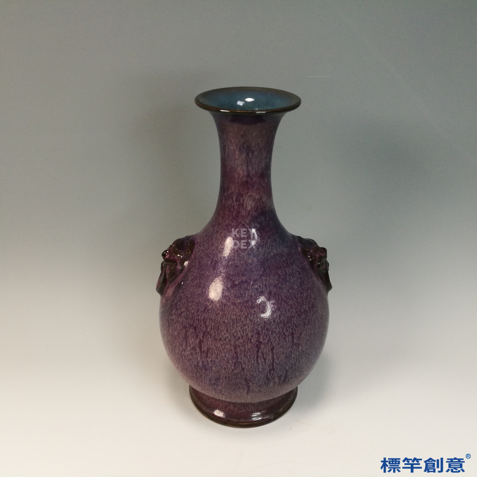 GB178 北宋鈞窯紫紅釉官字款獸首雙耳玉壺春瓶