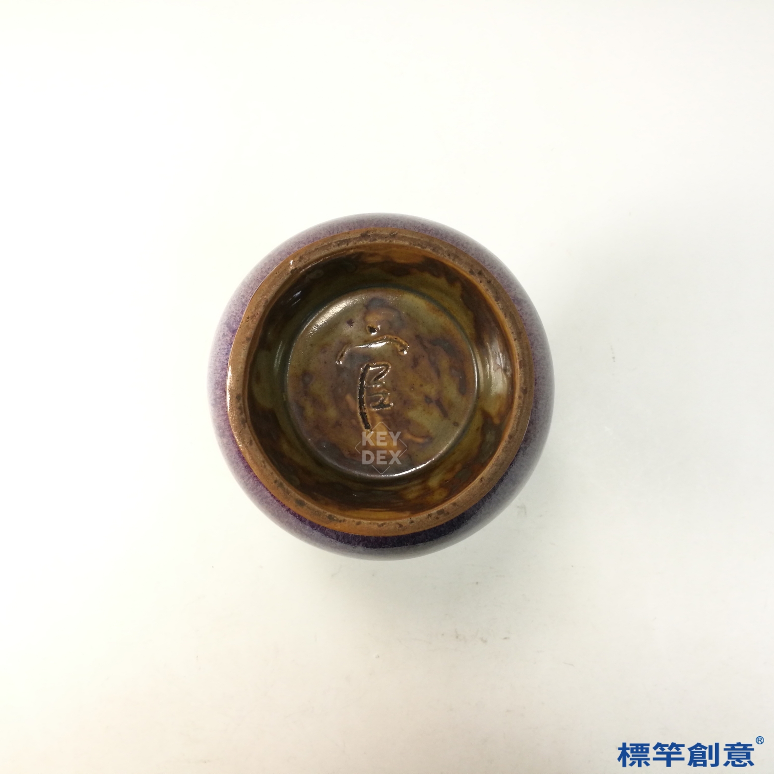 為北宋鈞窯名品。鈞窯為宋代五大名窯之一,主要分佈於今河南禹州,所產釉色變化豐富,享有「入窯一色、出窯萬彩」之美譽。本器底款刻「官」字,顯示其具御窯屬性。