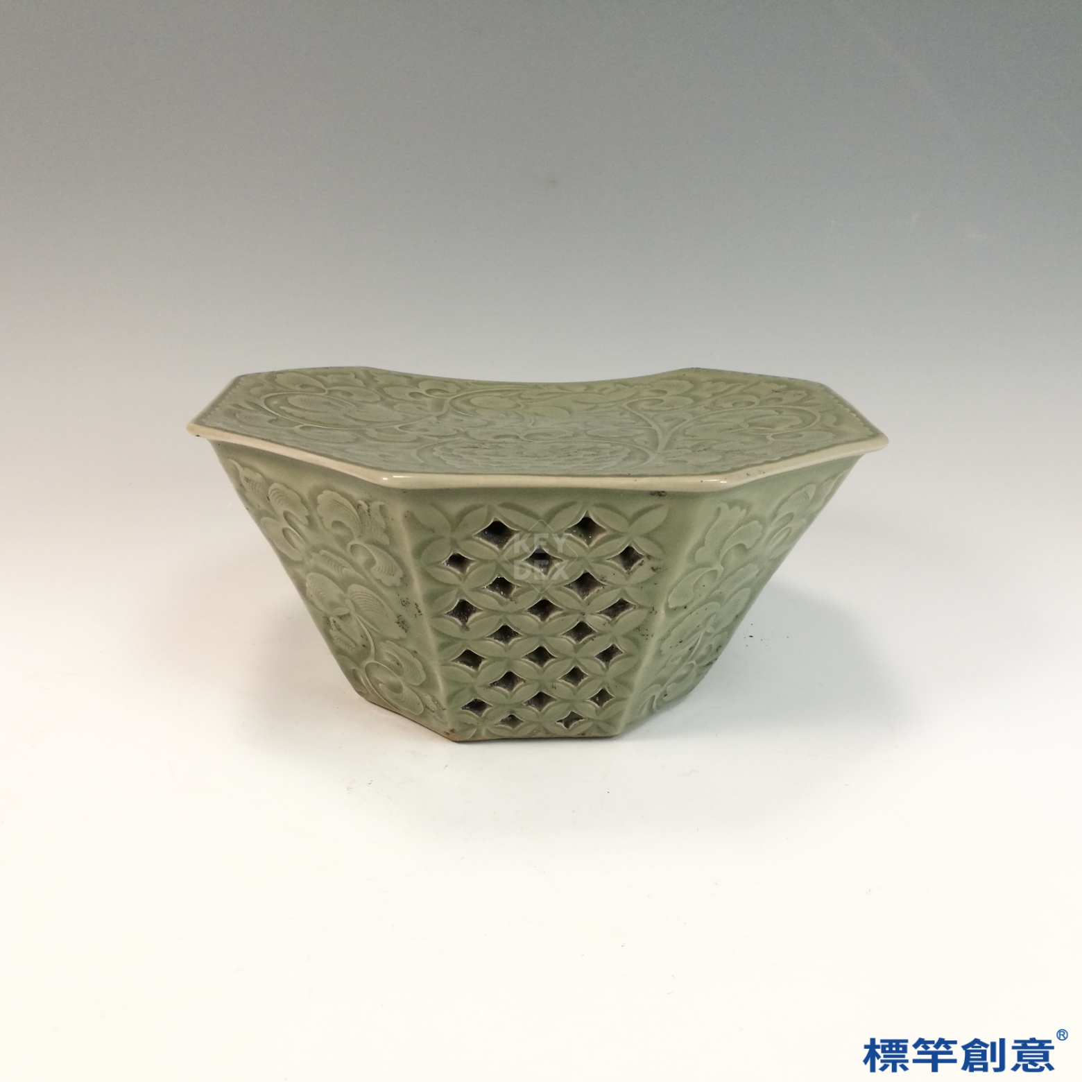 GB183 北宋耀州窯青瓷鏤空刻花瓷枕
