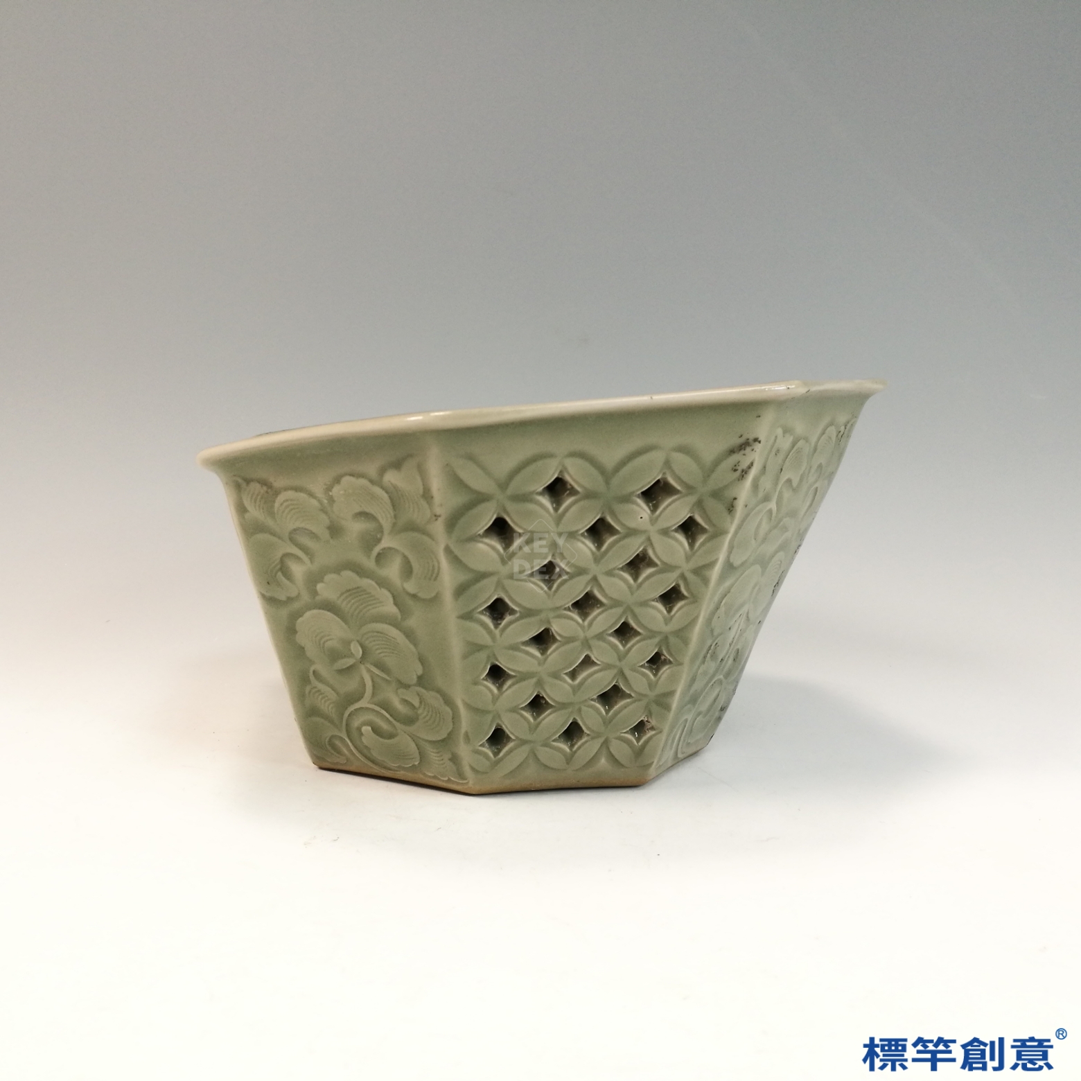 先以模印與雕刻手法製形成紋,經修整鏤空後整體施釉,高溫還原焰一次燒成,工藝難度高,稍有不慎易釉垂或坍塌。