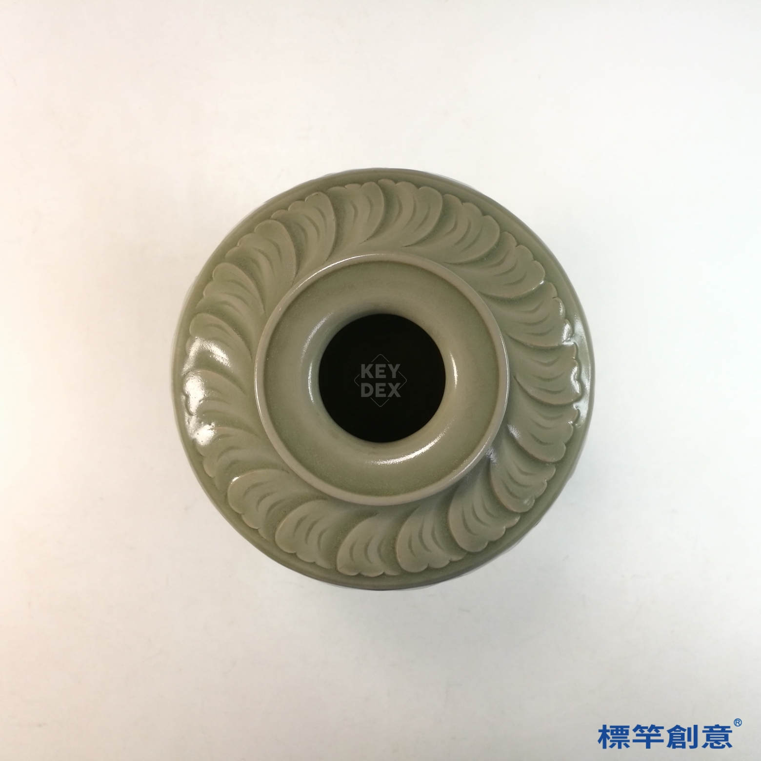 此瓶為北宋(960–1127年)耀州窯作品。耀州窯位於今陝西銅川,為北宋青瓷名窯,素以精緻雕刻與澄澈釉色著稱。