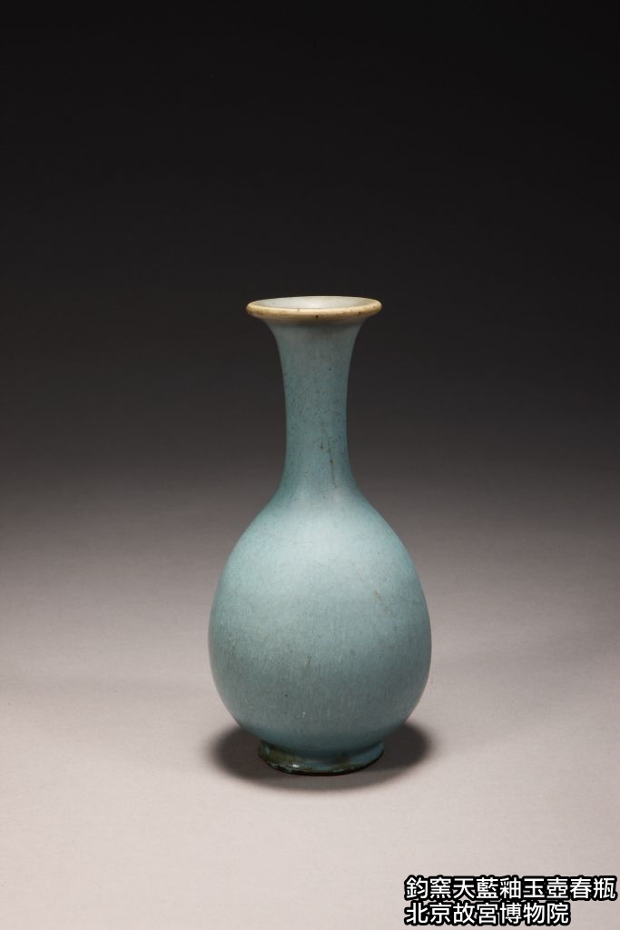 本器通高23公分,腹徑約11.5公分,器形呈上細下豐的玉壺春瓶式樣。細長頸部挺直上翹,過渡至外撇圓唇;豐潤的梨形腹穩定地承於圈足之上,整體造型勻稱挺拔,曲線優雅,重心穩定,觀感舒展大方。