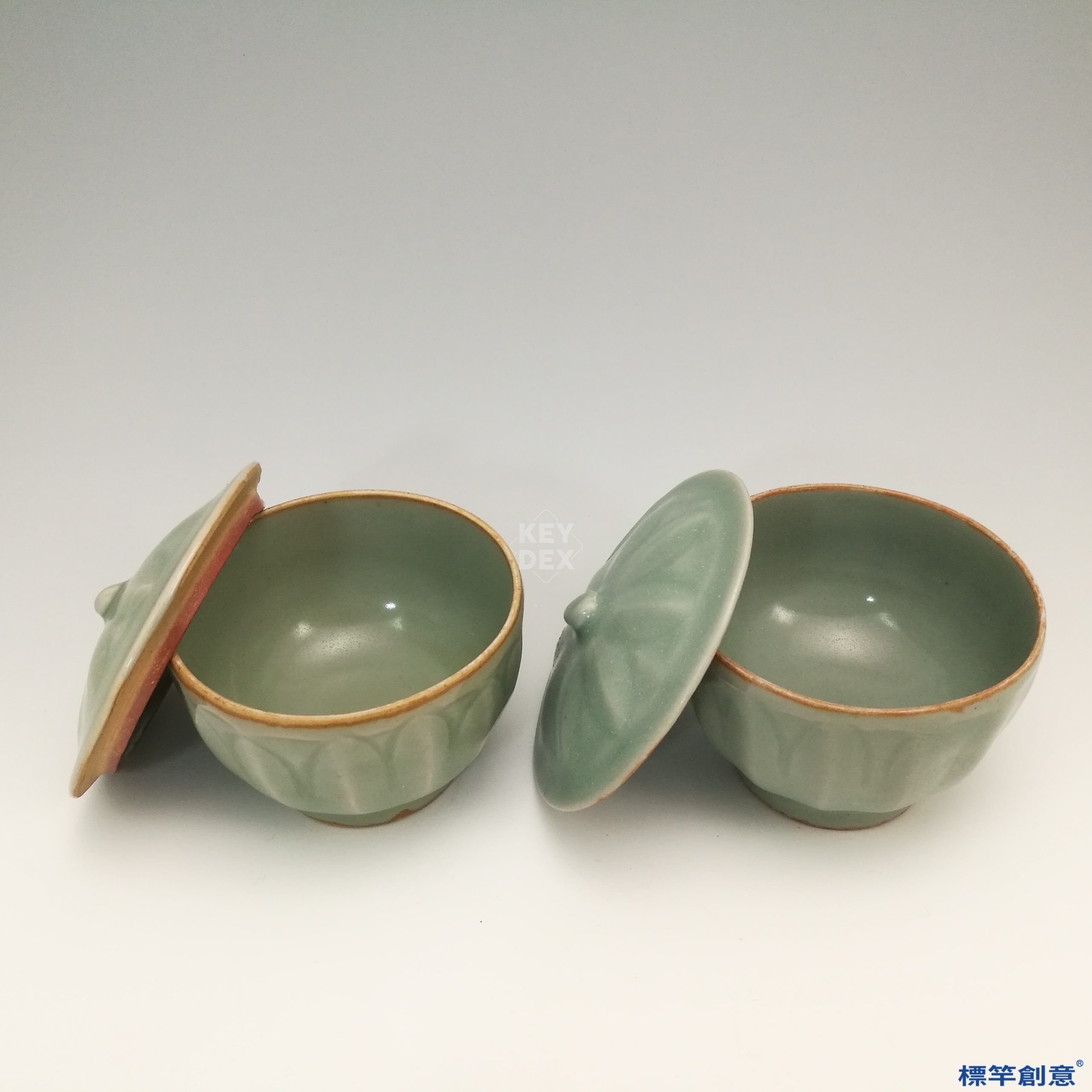 GC009 南宋龍泉窯青瓷刻蓮瓣紋佛教淨水蓋杯一對