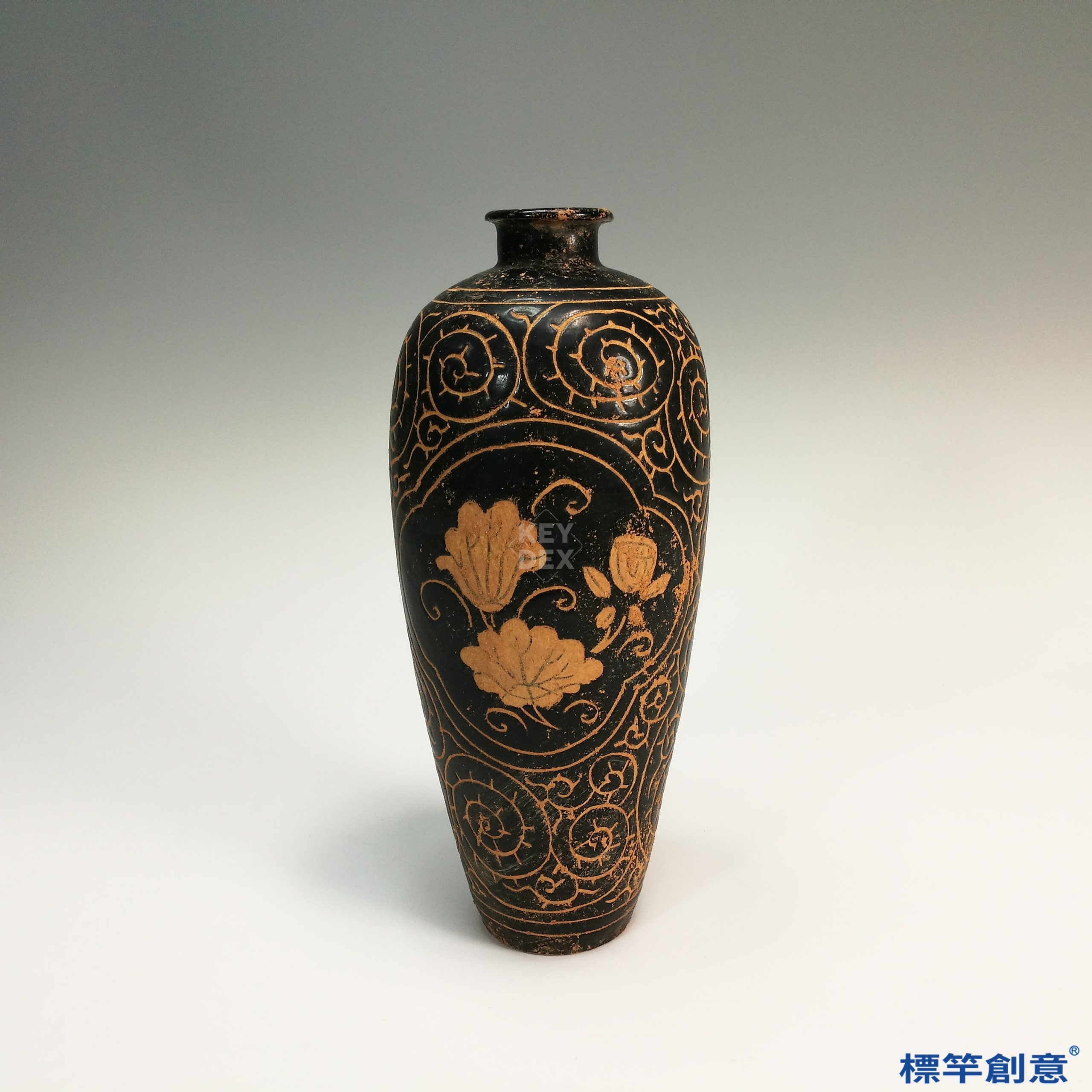 GC024 南宋吉州窯黑釉剔蓮花紋梅瓶