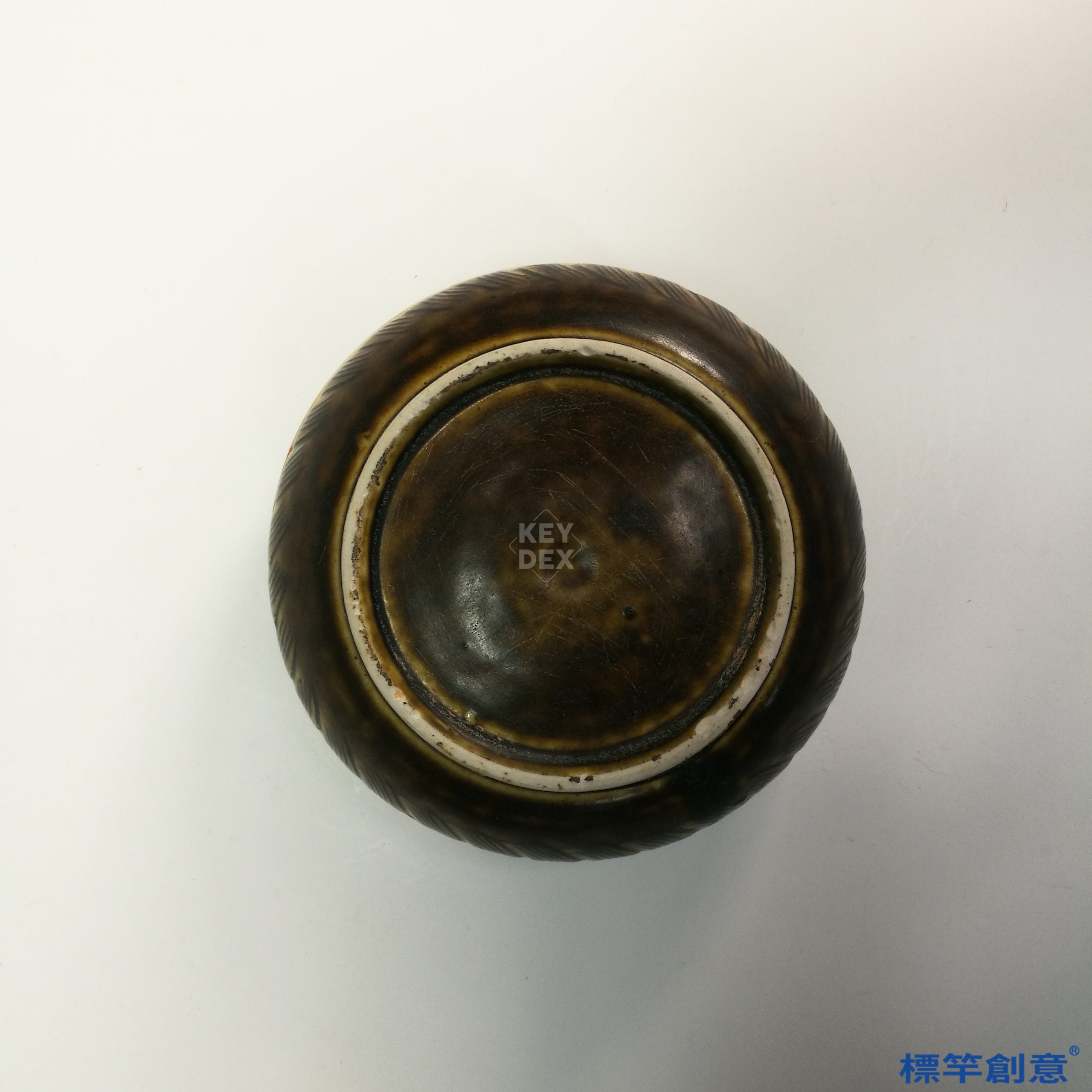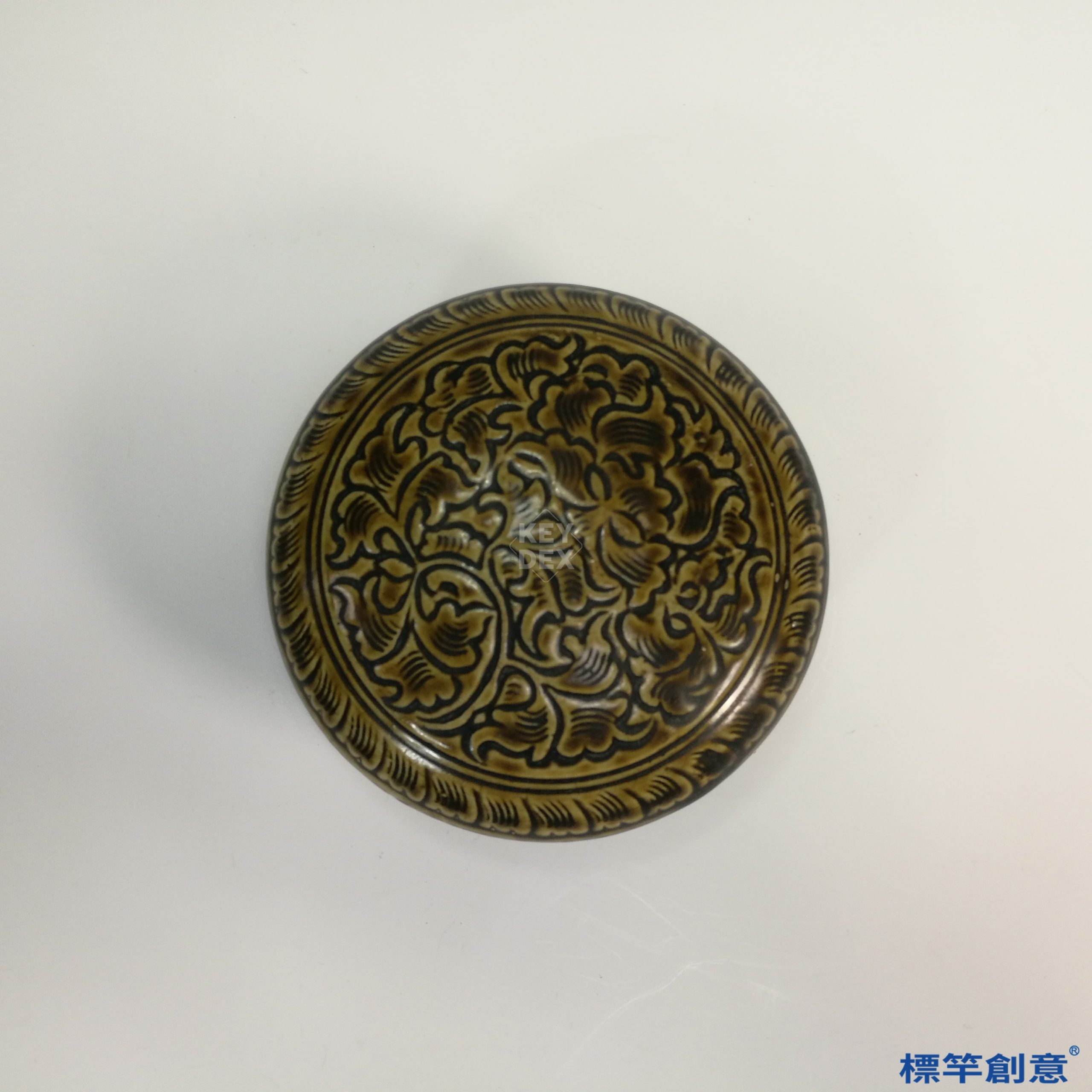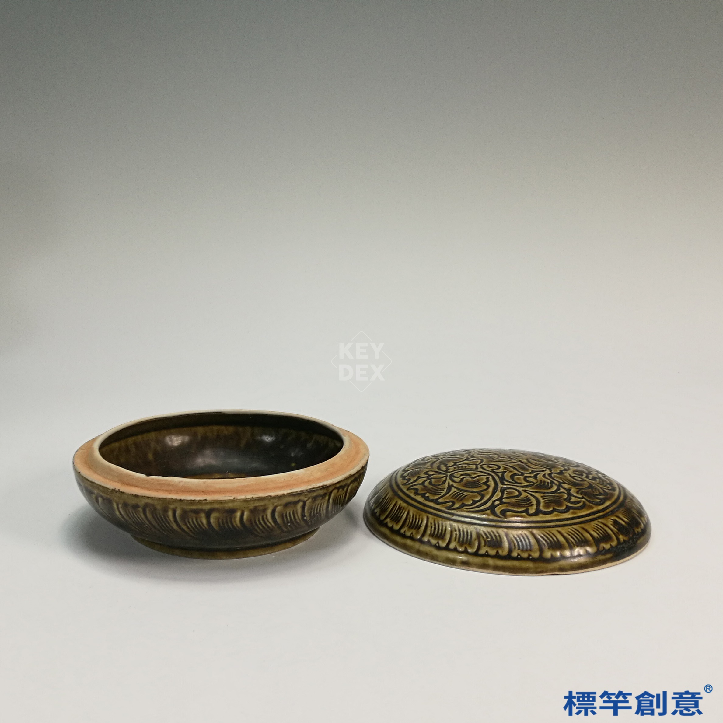 GC038 南宋建寧窯醬釉刻纏枝紋化妝粉盒