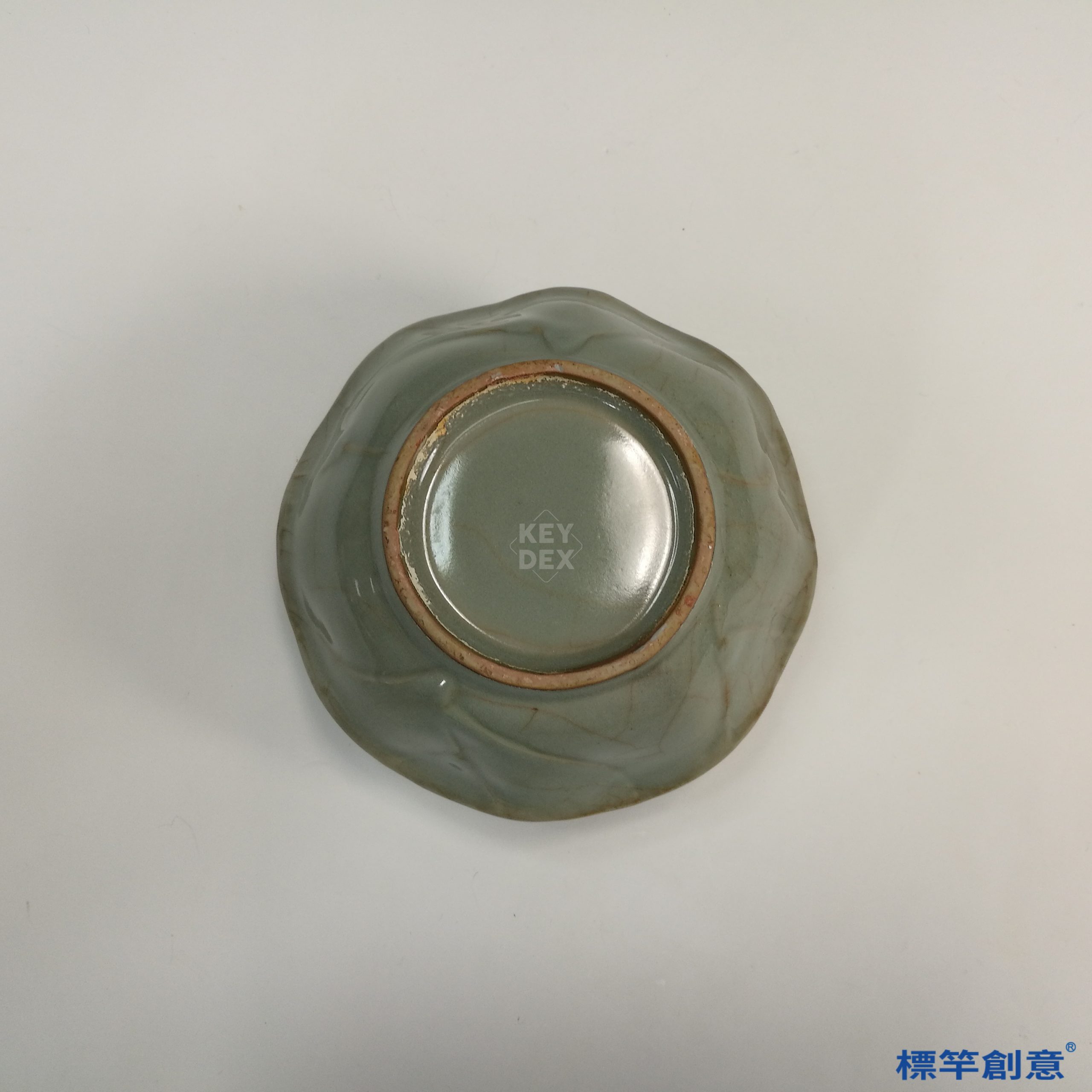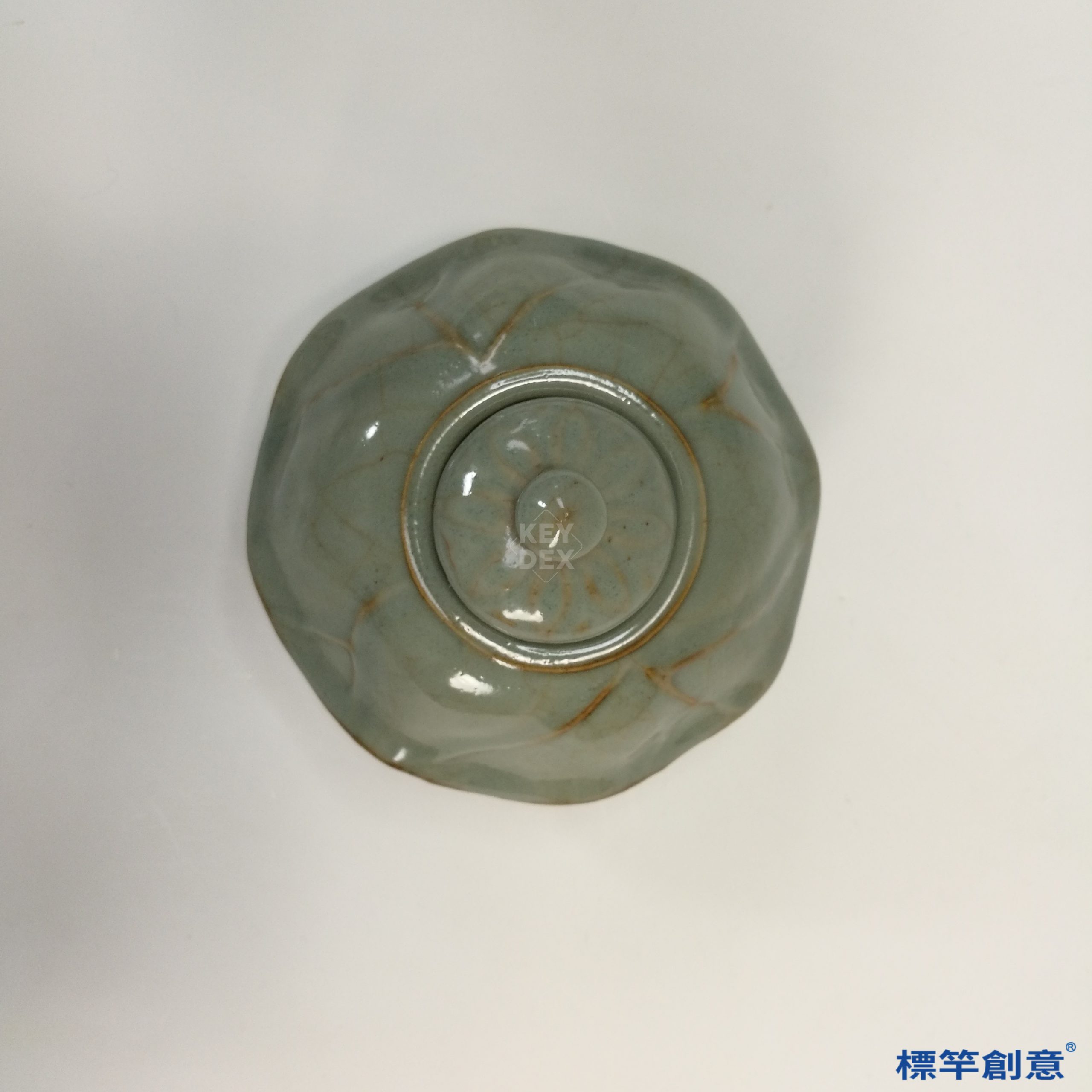 採輪製成型後,進行模印裝飾與修整,再施高鉛鈉釉,在還原氣氛中高溫燒成,展現龍泉青瓷特有的釉色與質感。