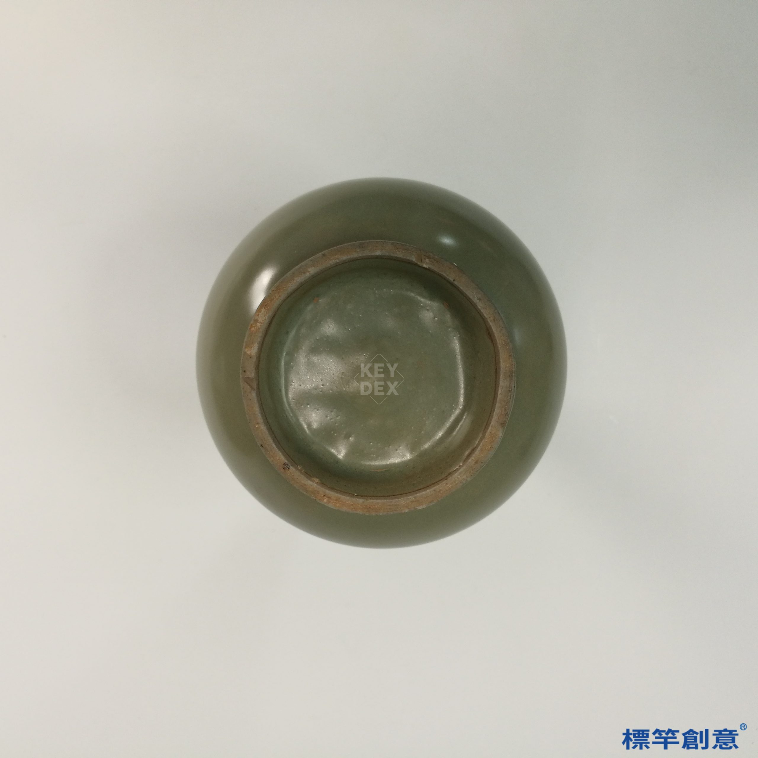 採還原氣氛高溫燒成,施釉前胎體修整精細,經素燒再上釉,形成透明玉潤效果,屬龍泉成熟期作品。