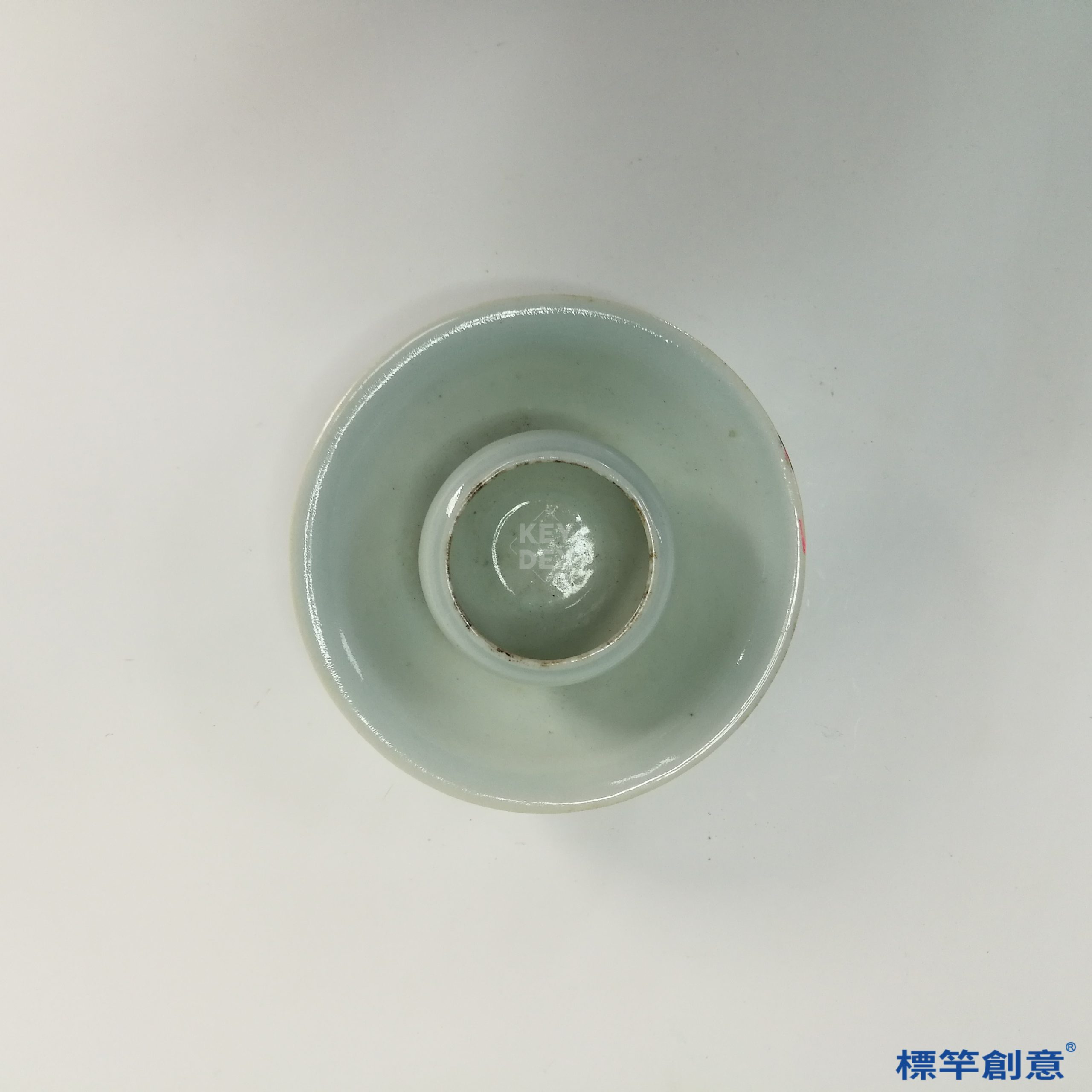 本器高5公分,口徑10.5公分,為盞托連體式結構。中央盞形圓鼓,外接寬淺托盤,底部承以圈足,整體線條和緩雅致,比例匀稱,結構穩定。