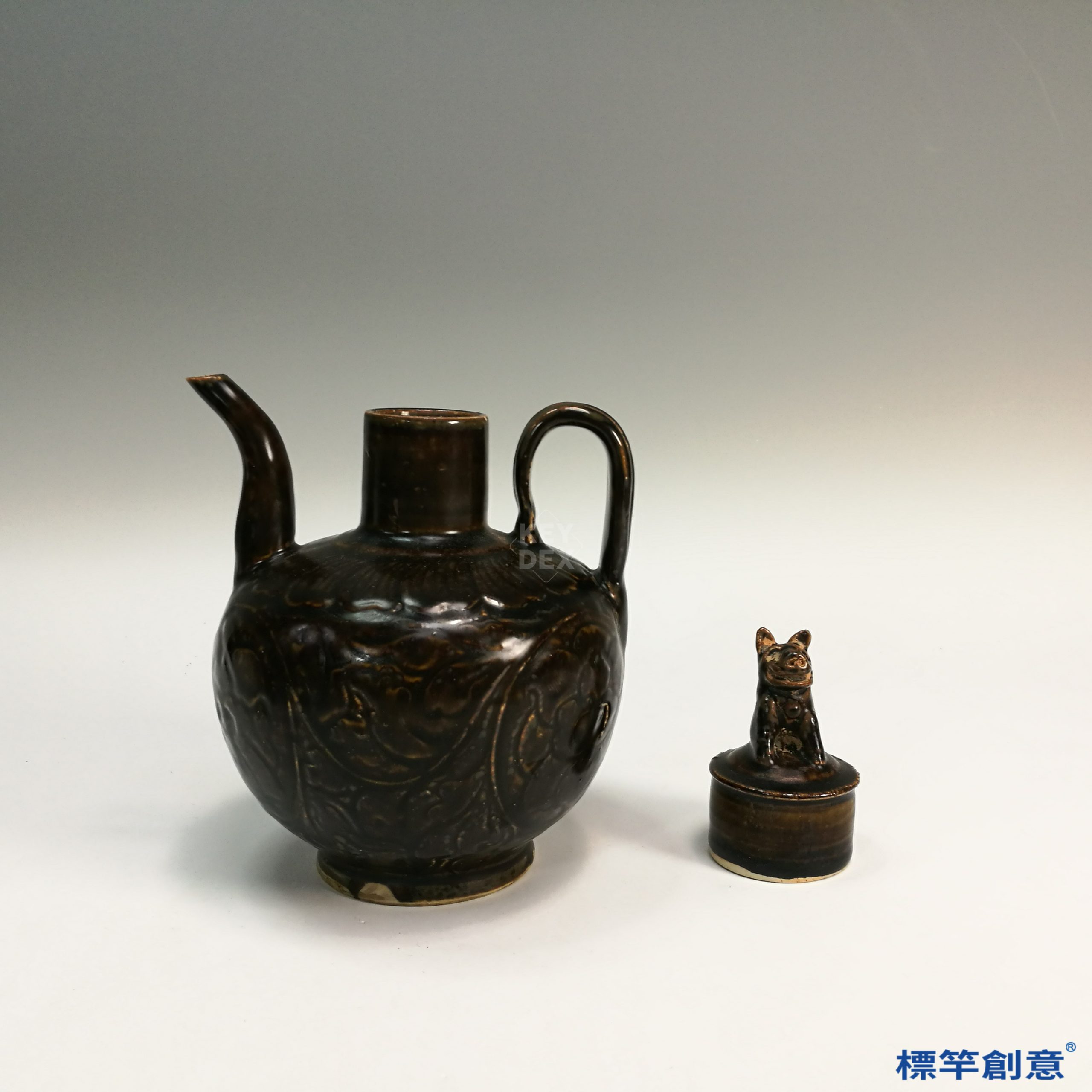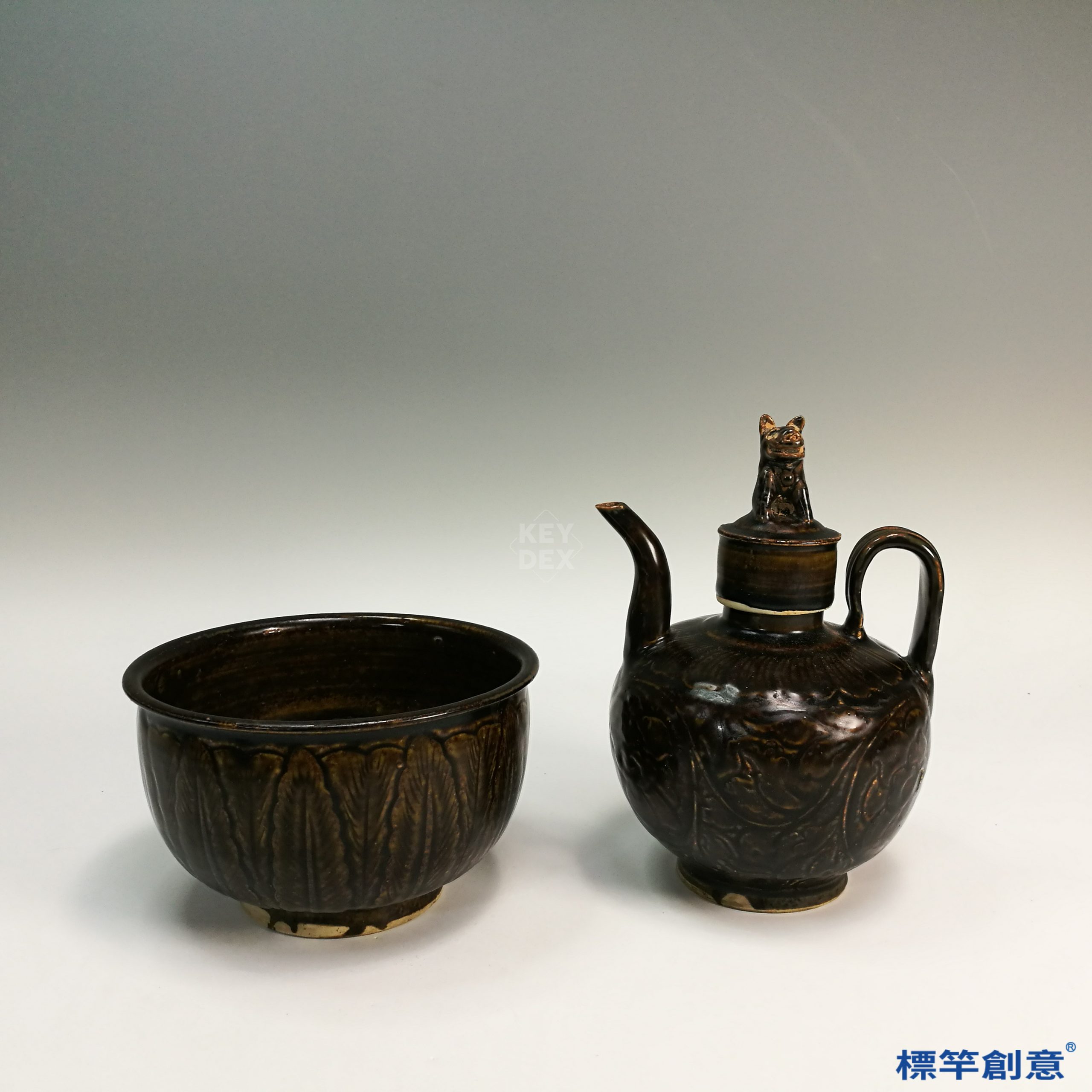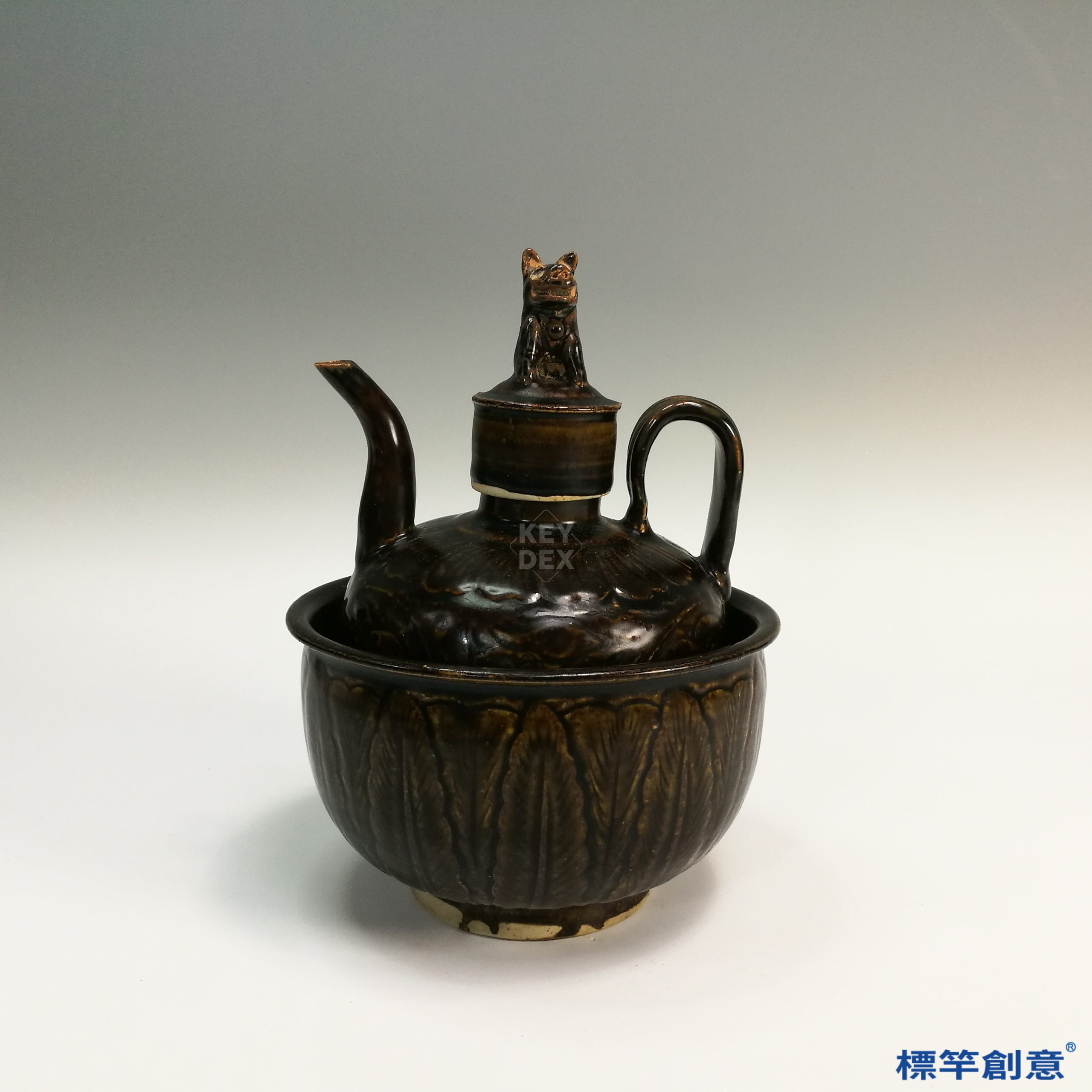 GC094 南宋將樂窯醬釉溫酒壺防燙壺托一套