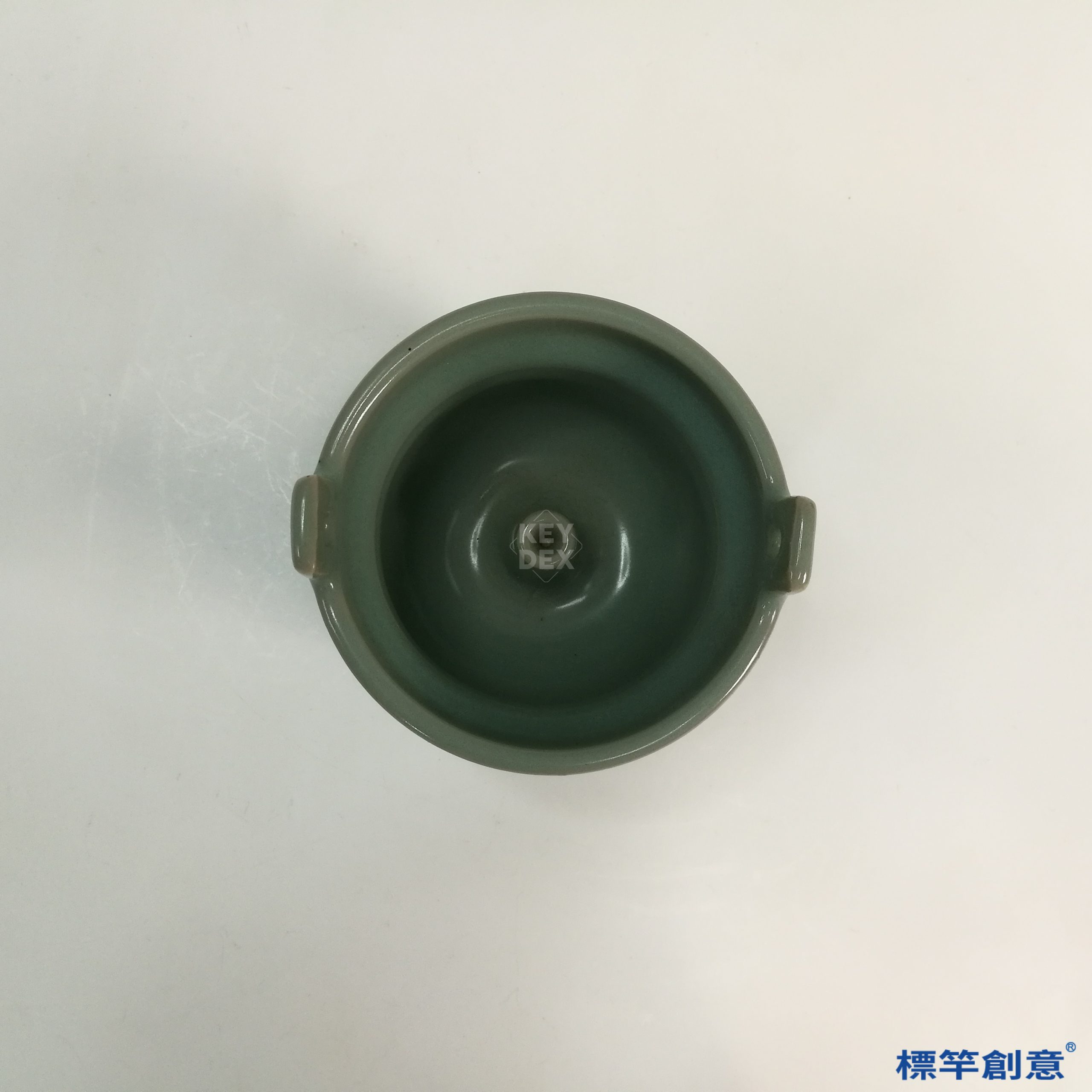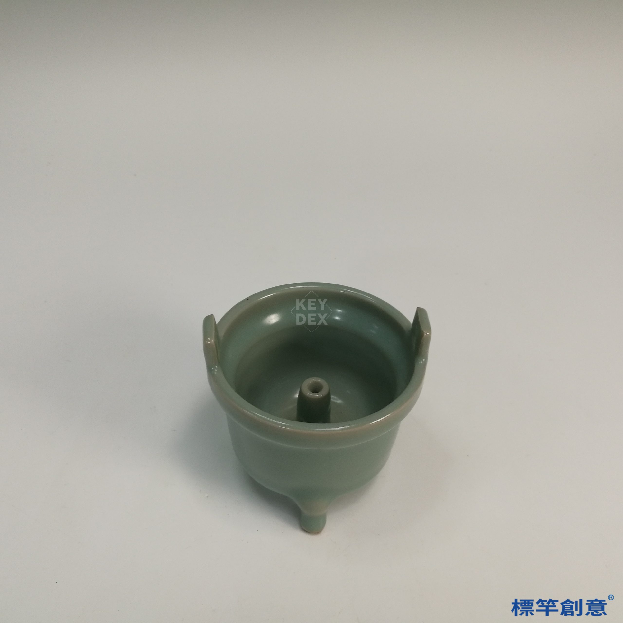 器形由模製成形後修整細部,再施釉入窯,於還原氣氛中高溫燒成,溫度約攝氏1220~1250度。三足支撐結構經高溫燒結後穩固耐用。
