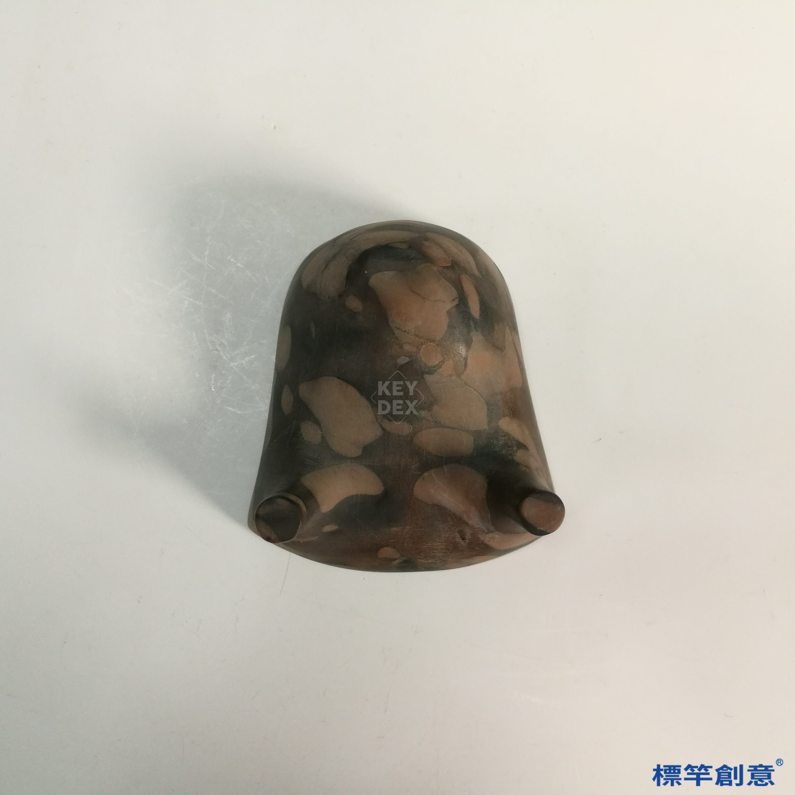 由整塊豹紋石經裁料、修形、雕磨、拋光而成。無需施釉或燒造,純以石工技藝展現形制與紋理之美,兼具雕刻與文房實用功能。