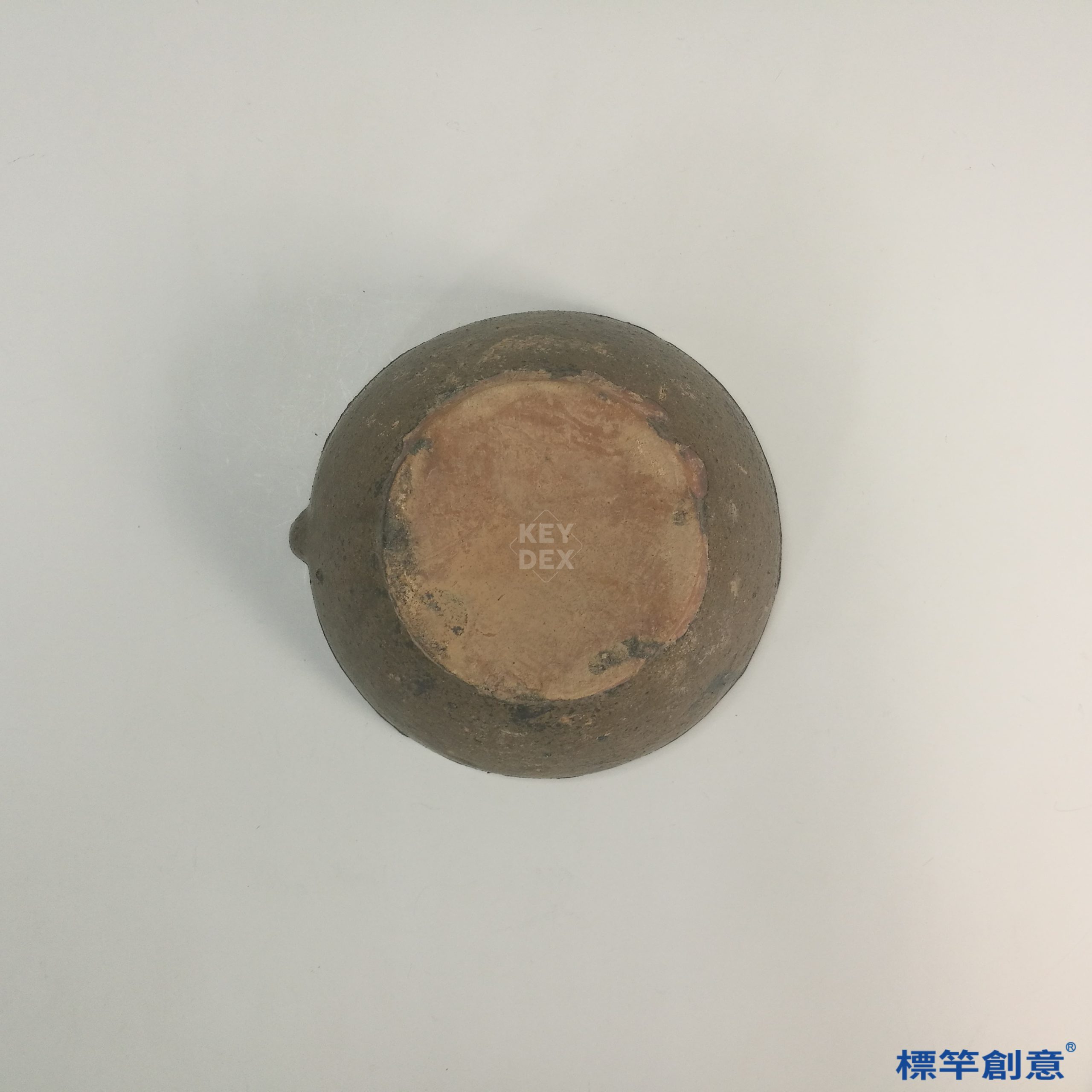 本器通高6公分,口徑達17公分,敞口深腹,外收下腹,圈足穩固。臼口一側設有導流口,便於倒出茶末或液體,兼具設計巧思與實用功能。內壁可見縱向刻劃之研磨紋理,外壁素面無釉,呈現濃厚實用風格。