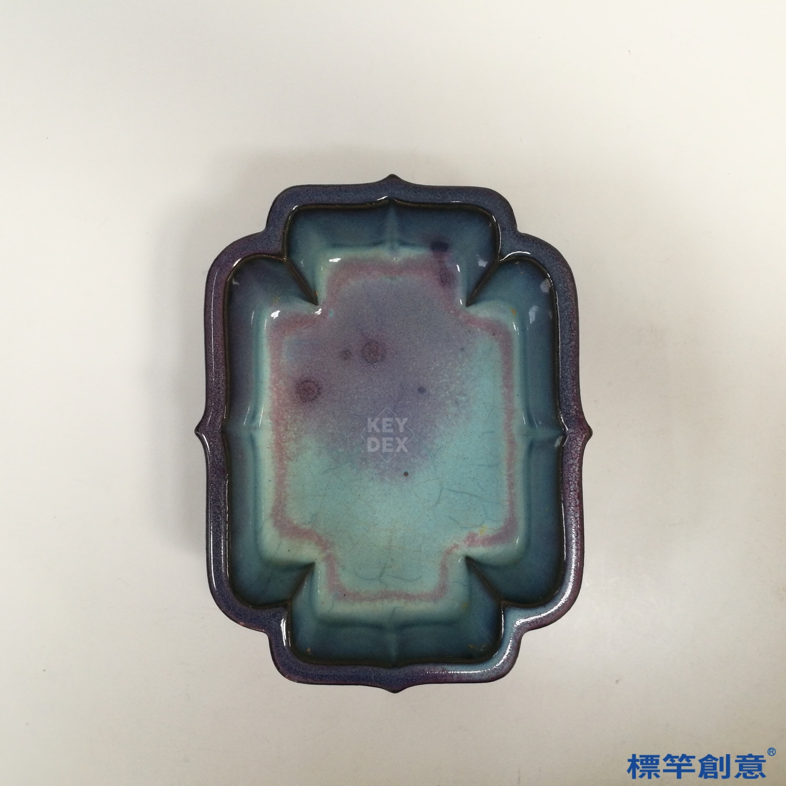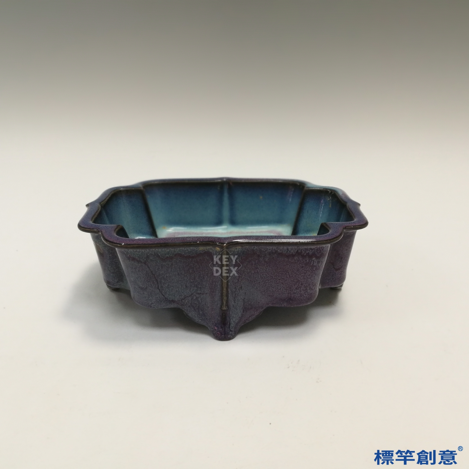GC168 南宋鈞窯紫紅釉慈元殿款菱口水仙盆