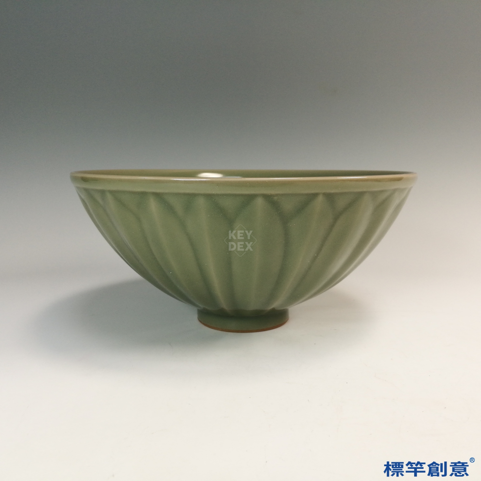 GC194 南宋龍泉窯梅青釉刻蓮瓣紋大碗