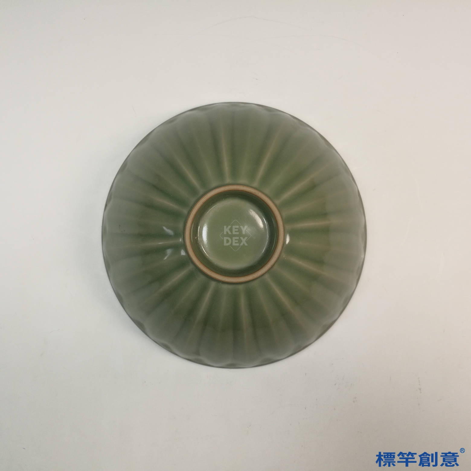 採精煉瓷石胎土,經修坯、模印蓮瓣、施釉後,高溫還原氣氛中燒製而成。底部露胎部分呈米黃色細砂胎,顯示傳統龍泉燒成工藝。