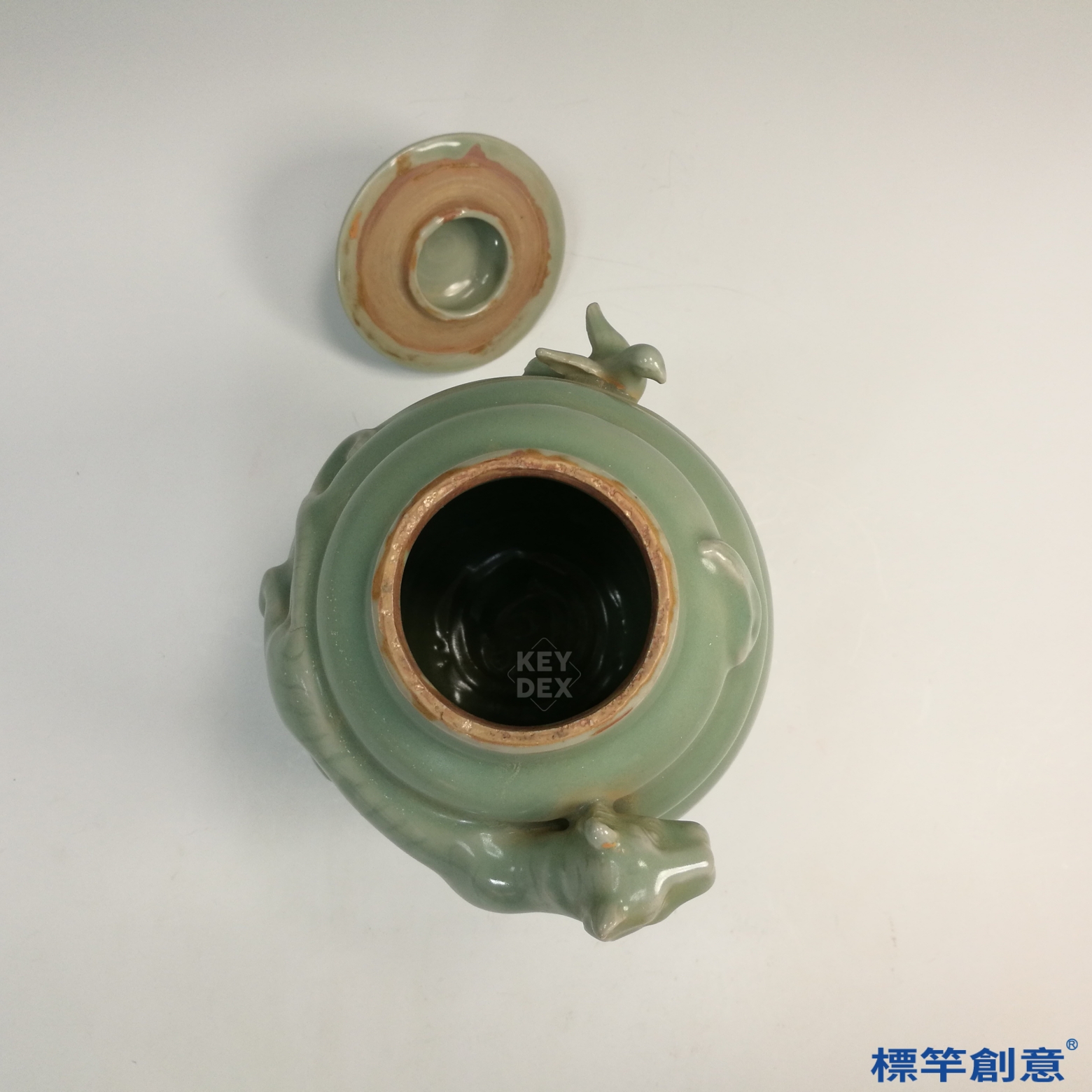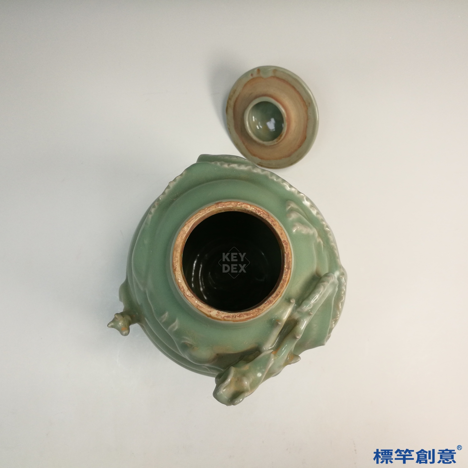 採龍泉典型還原焰燒成,器成後先行成型與雕塑,再覆以厚釉入窯高溫燒製。釉面玻璃質感強,形成良好保護層,且便於長期保存。