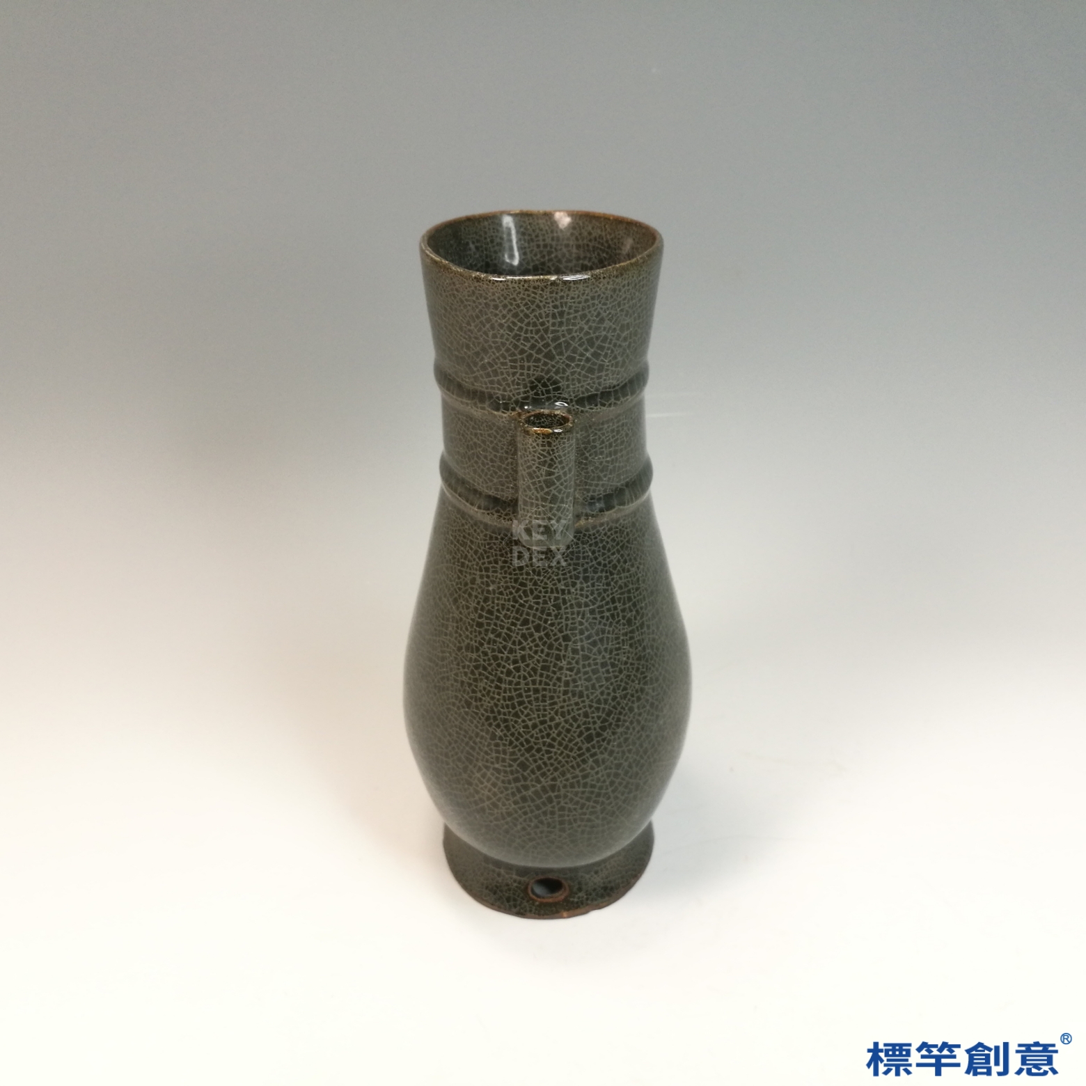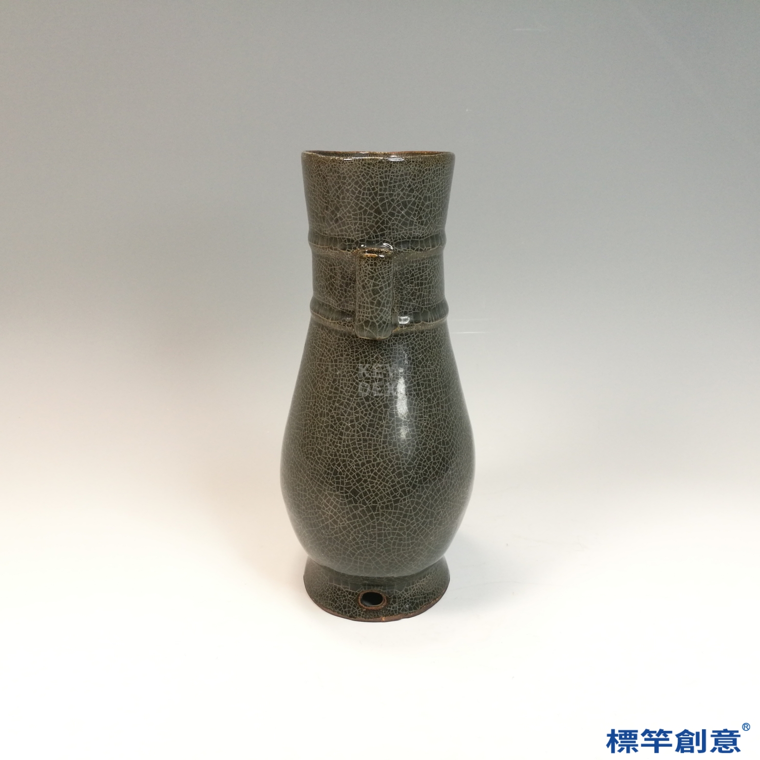器物先以黑胎拉坯成形,雕製貫耳,待半乾後修整器表。施以高溫釉料後入窯還原燒成,溫度約攝氏1250度,冷卻後自然形成開片紋理,為高溫釉裂紋美學的代表之一。