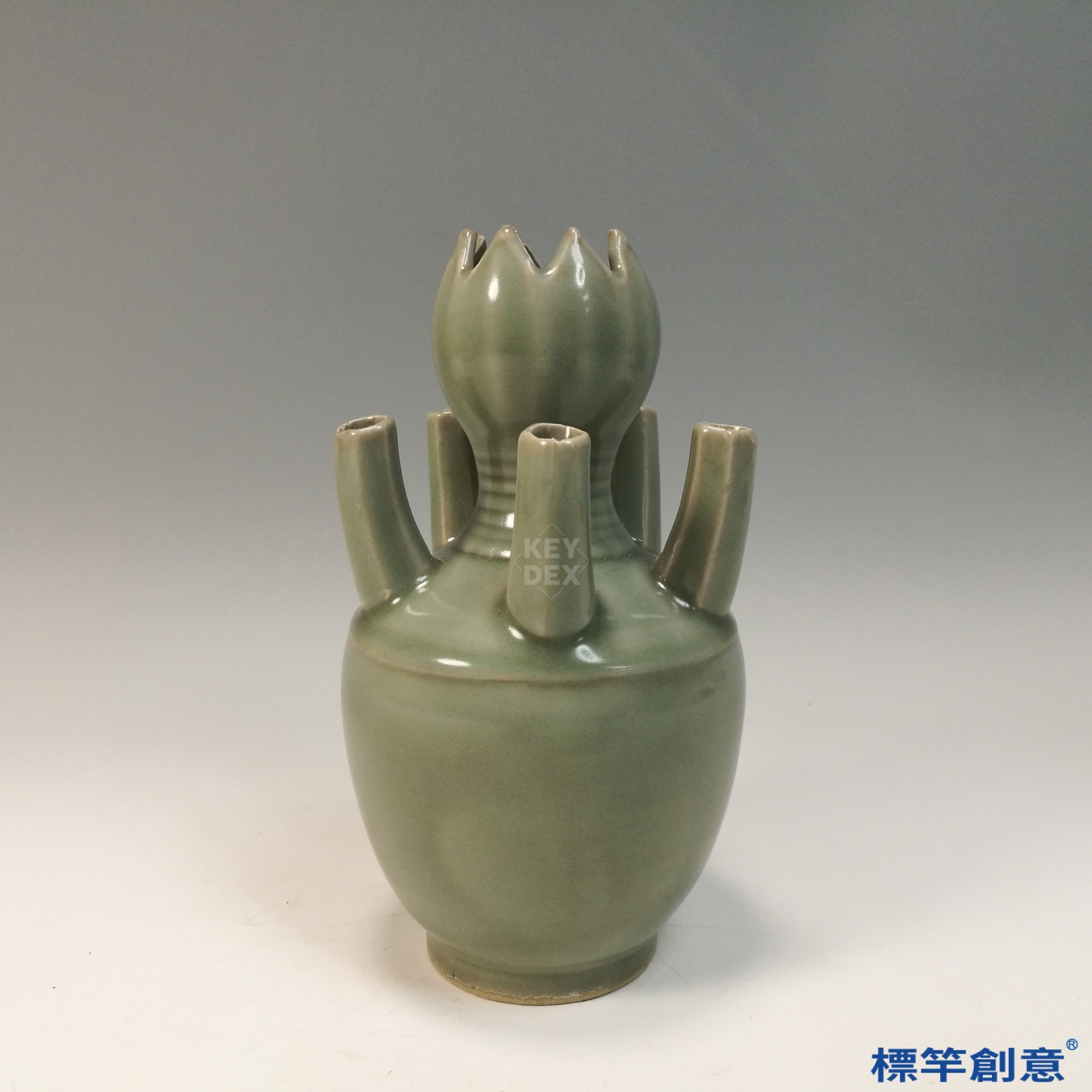五管瓶為宋代罕見造形之一,結合宗教與文人審美趣味,具備造形創新與技術難度,為龍泉窯器物中別具代表性的花器類作品,具有高度藝術與學術研究價值。