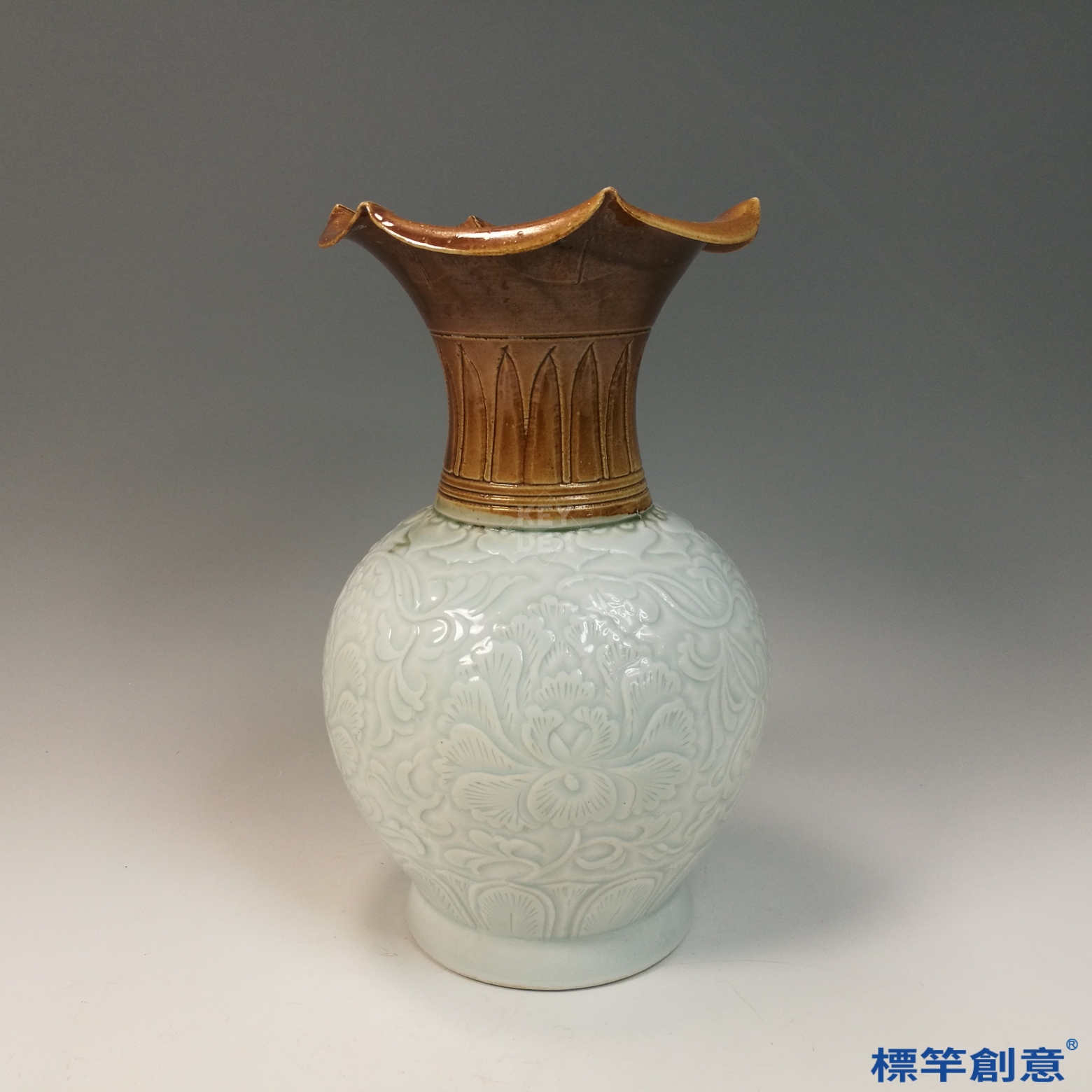 GC226 南宋湖田窯青白瓷柿紅花口刻纏枝花卉紋賞瓶