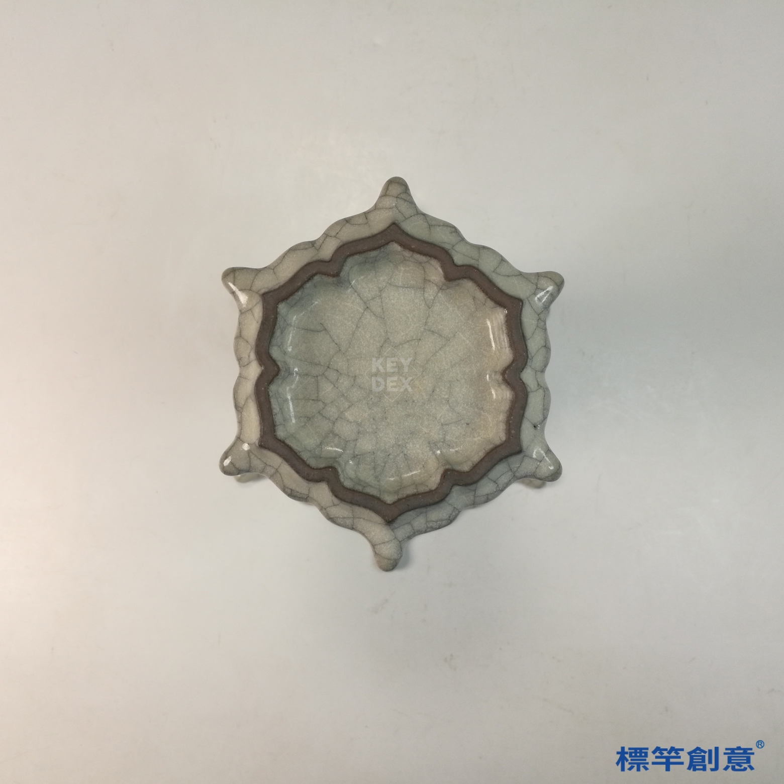 HA004 元代吉州窯米白釉黑彩繪蓮花紋三足香爐