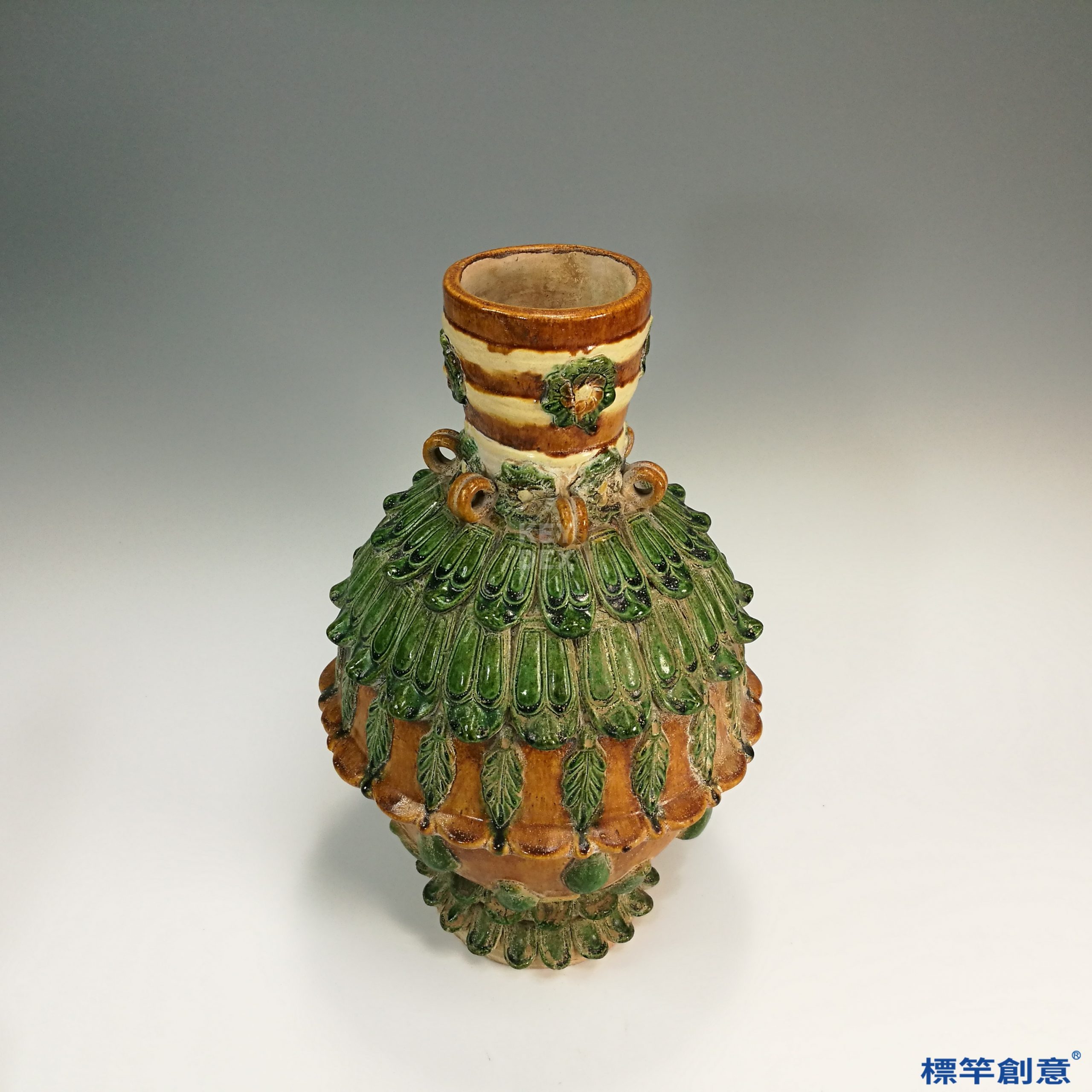 GD019 遼代瓦缸窯三彩釉貼蓮瓣紋佛教淨水蓮花尊