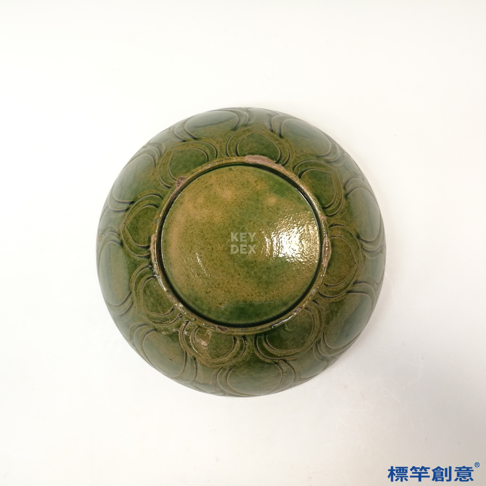 GD024 遼代赤峰窯綠釉刻蓮瓣鳳紋碗