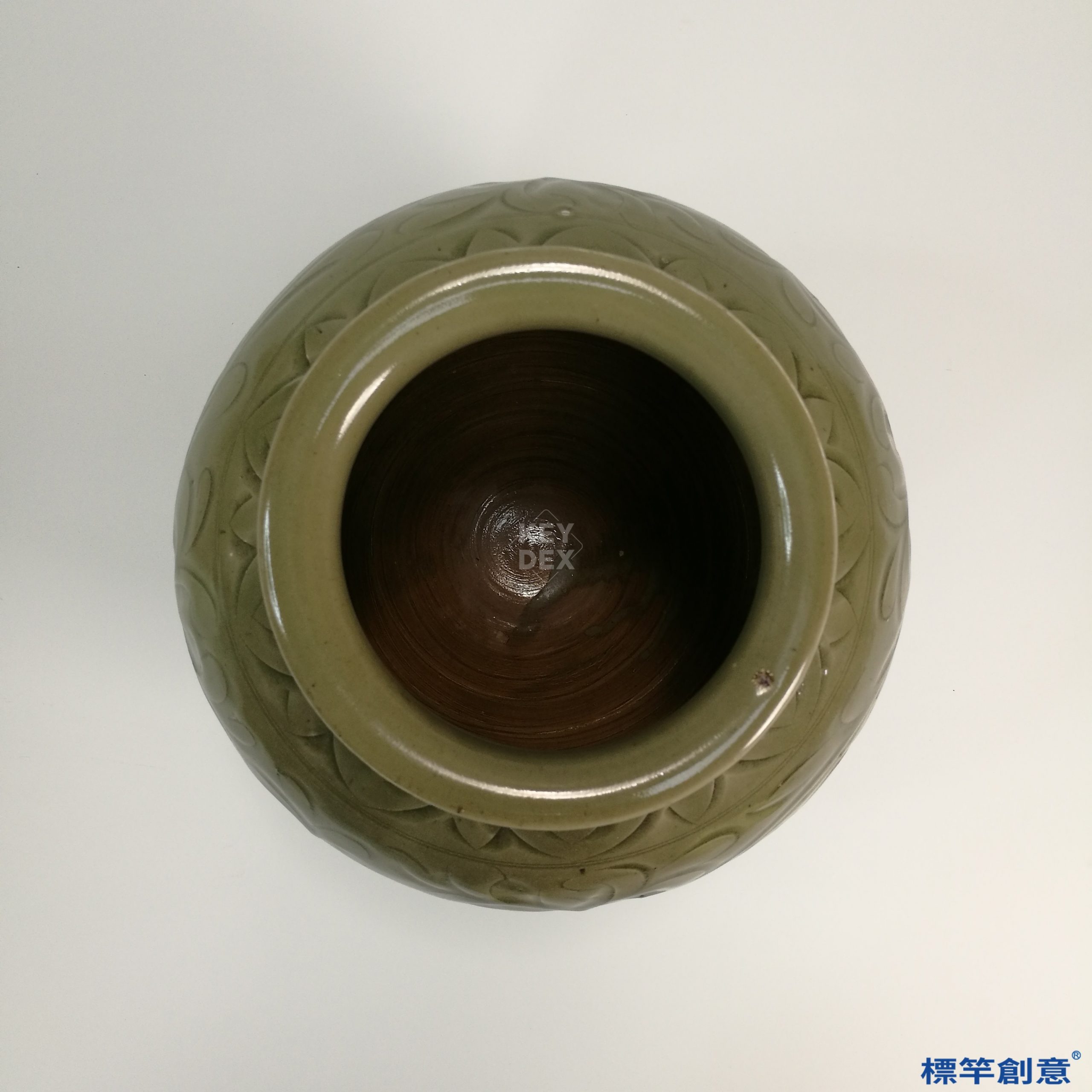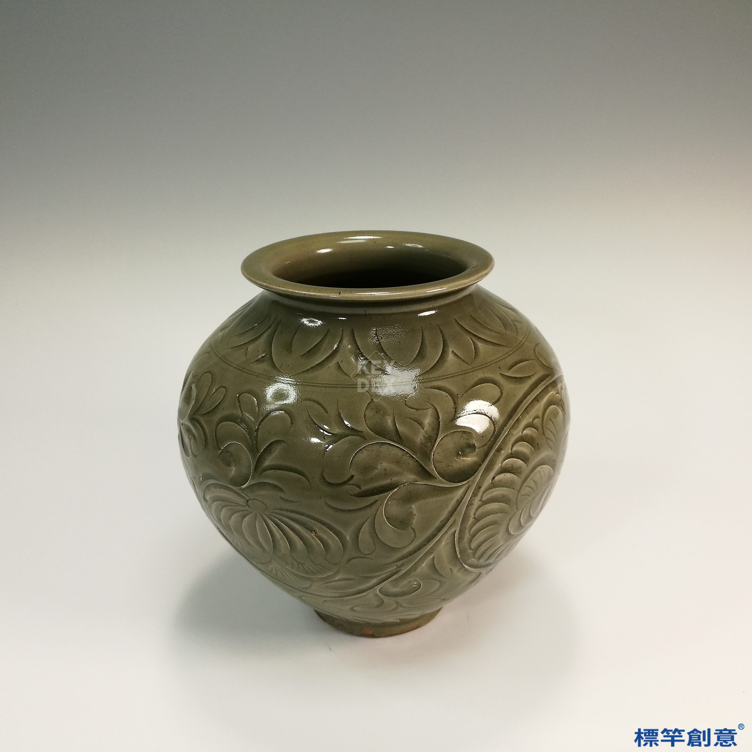 GE004 金代耀州窯褐青瓷刻牡丹紋罐