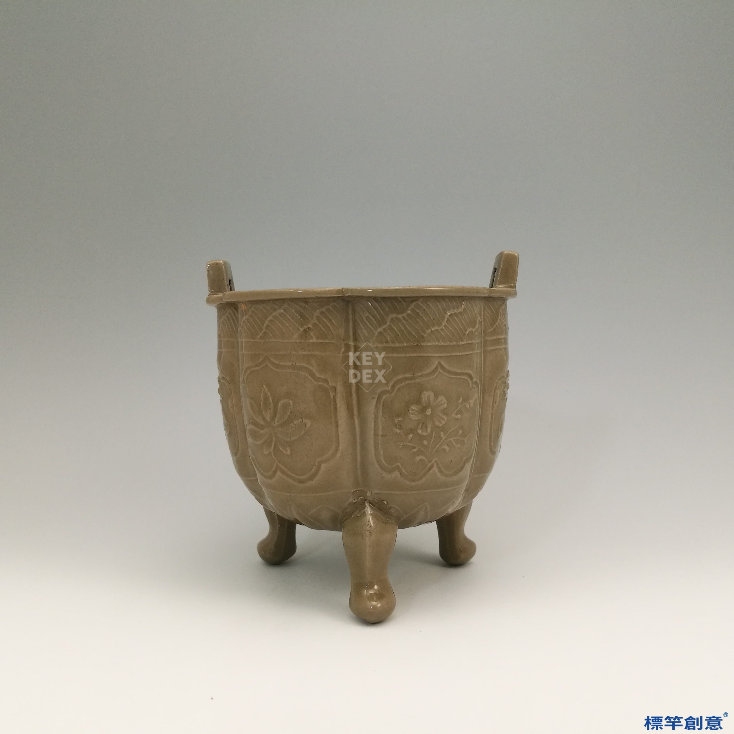 GE009 金代耀州窯土青瓷印花雙耳鼎式香爐