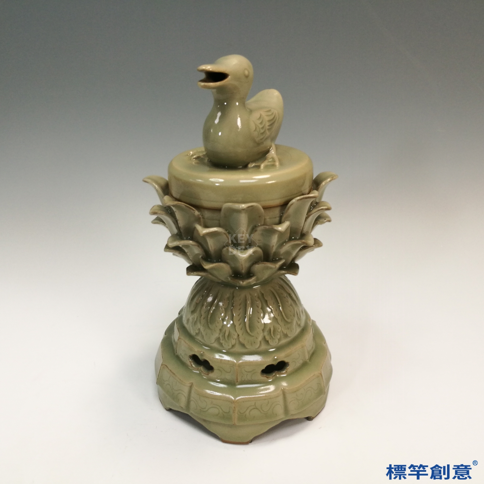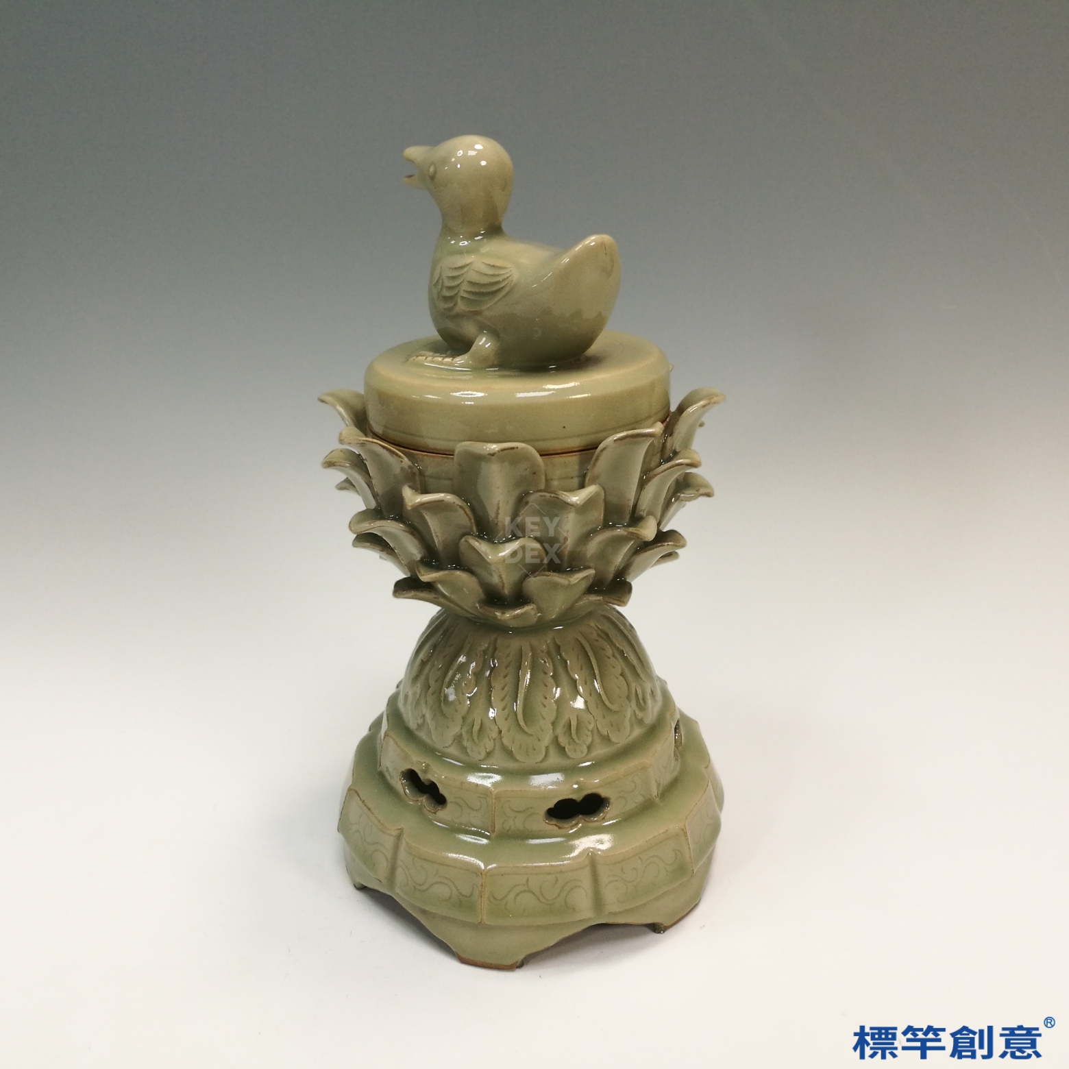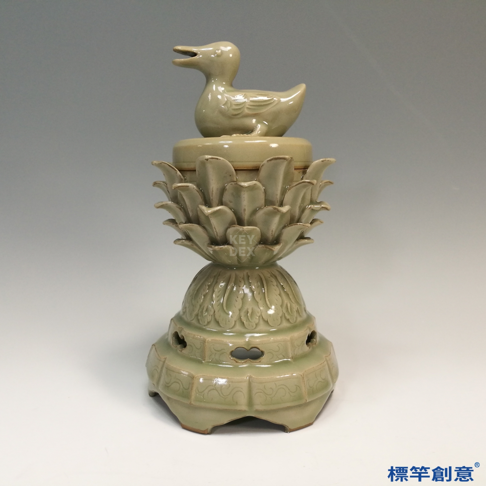 GE018 金代耀州窯褐青瓷蓮座塑鴨求功名薰香爐