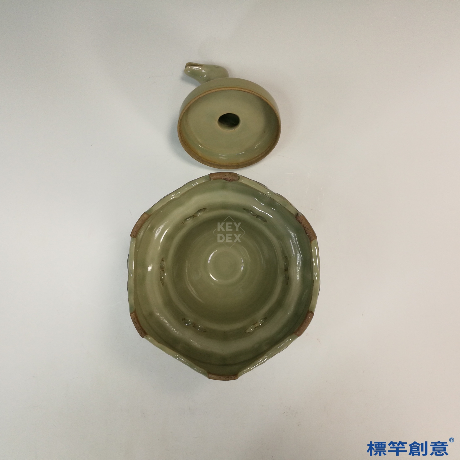 先模印蓮座與鴨體,再局部手塑結合,組裝成型,通體施釉後高溫燒製。整器胎釉結合緊密,燒成火候穩定,展現耀州窯晚期燒造技藝。