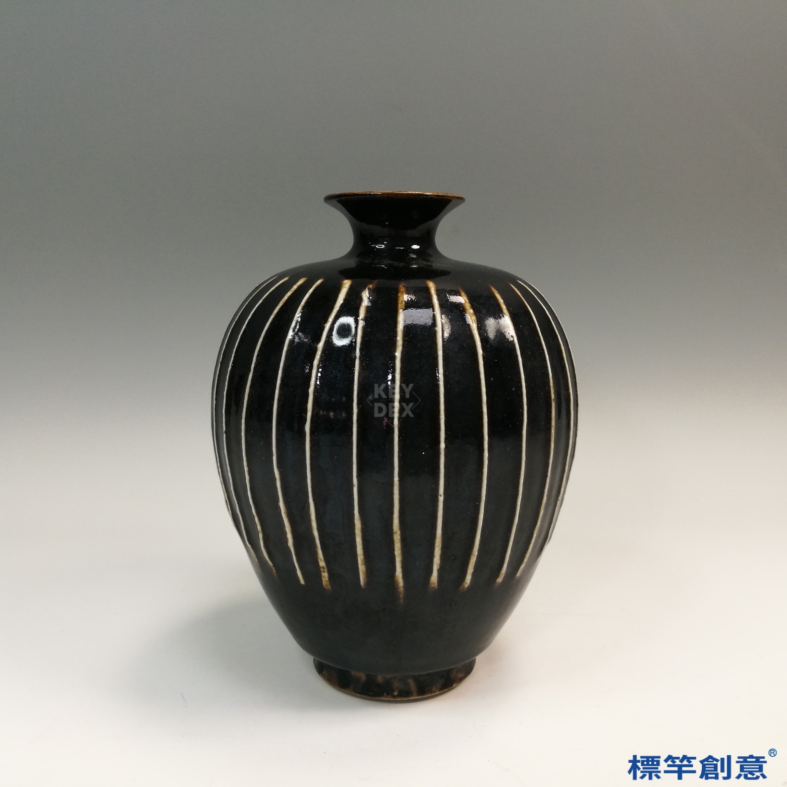 GE023 金代介休窯黑釉剔白線紋梅瓶