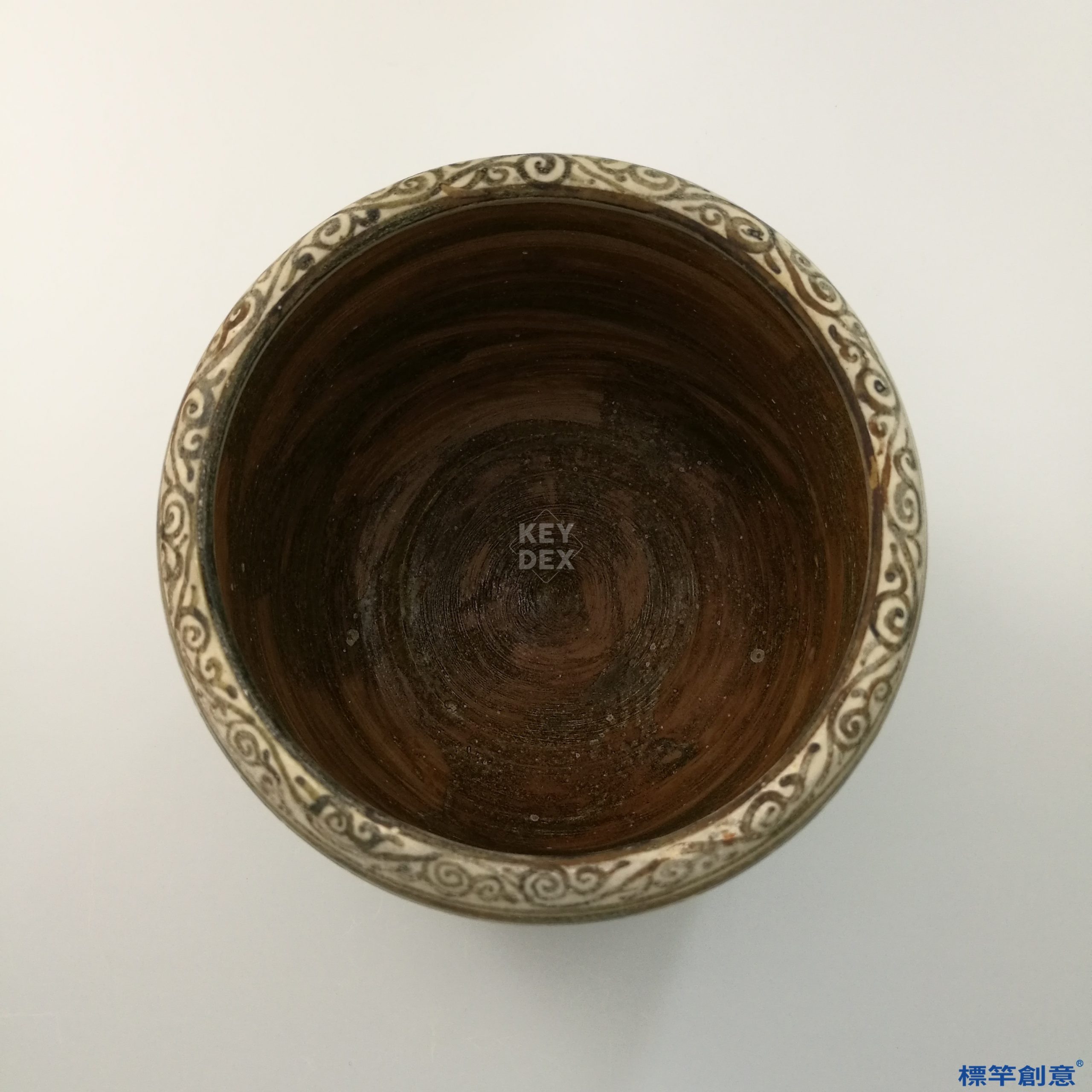 本品為元代吉州窯製器,吉州窯位於江西永和鎮,興盛於宋元時期,以創新裝飾技法聞名。元代時期,其風格延續宋制,並融入民間信仰與佛教題材,廣為流行於江南寺廟與士庶家庭。