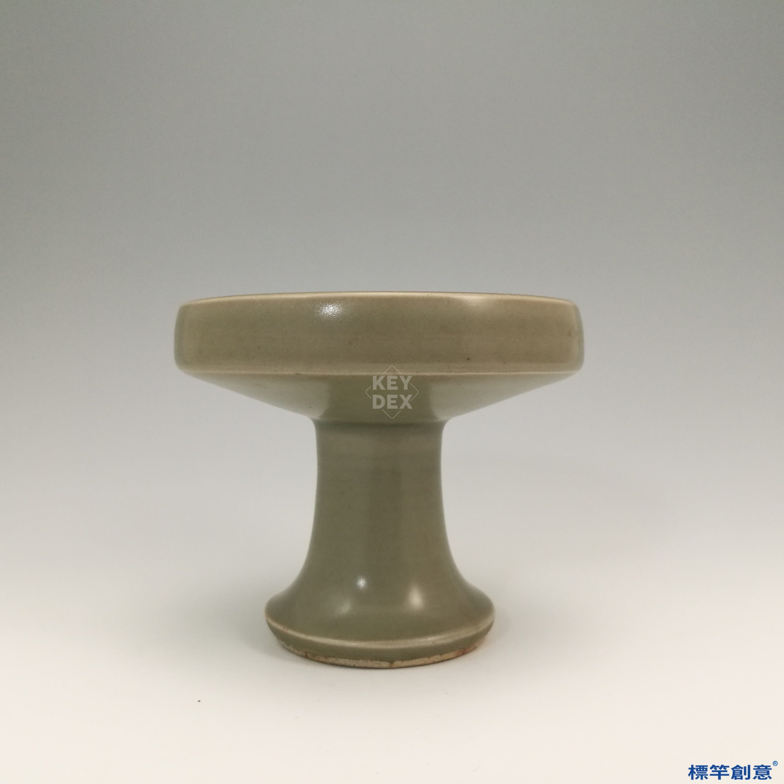 本器高8公分,口徑約9.8公分,形制為直口、深盤、長頸高足設計。盤面平整開闊,與高足連接處圓潤過渡,整體比例穩重挺拔,具莊嚴感。